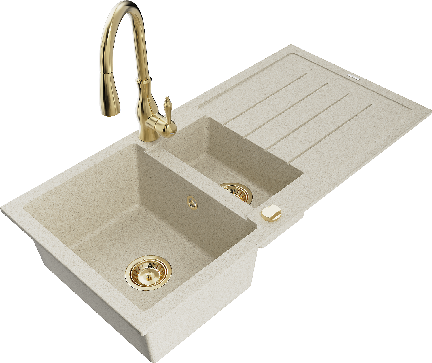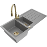 Mexen Andres granite sink 1.5-bowl with drainer and Savita kitchen tap, beige - 6515-69-672601-50