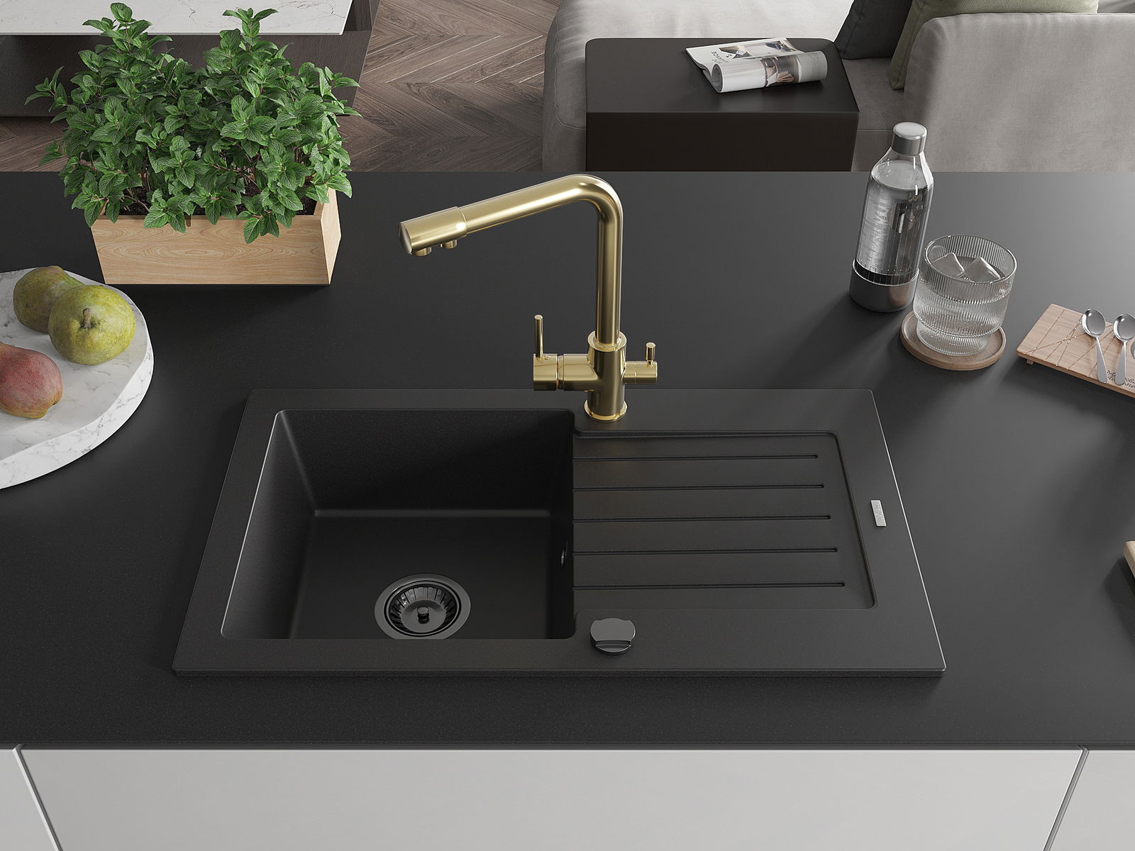 The sink is made from high-quality granite. It serves as an elegant and, above all, practical addition to any kitchen, regardless of its style. The high quality and durability of granite ensure many years of use.