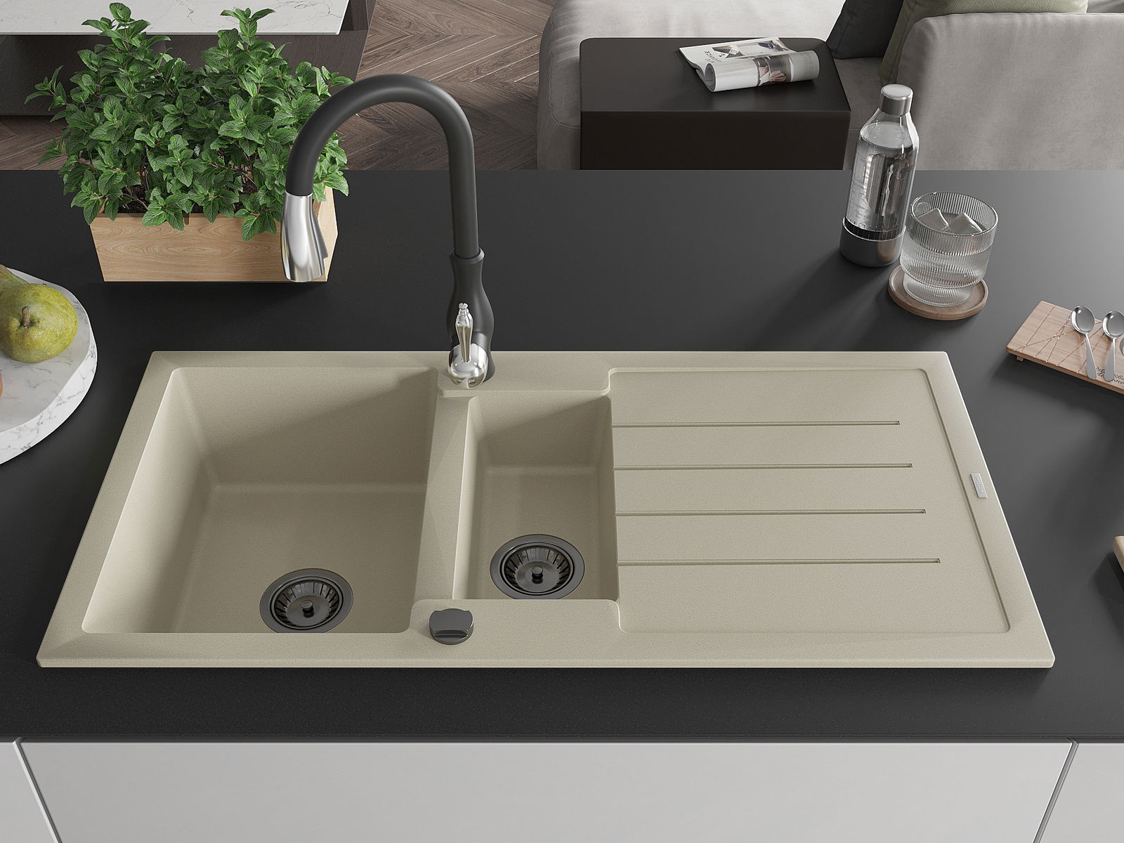 The sink is made of high quality granite. It is an elegant and, above all, practical complement to every kitchen, regardless of its style. High quality and granite durability ensure many years of use.
