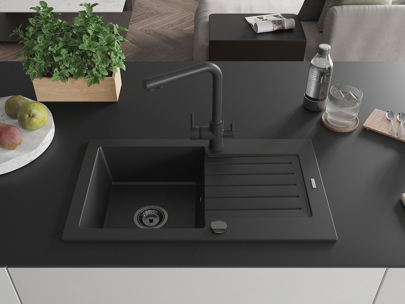 The sink is made from high-quality granite. It serves as an elegant and, above all, practical addition to any kitchen, regardless of its style. The high quality and durability of granite ensure many years of use.