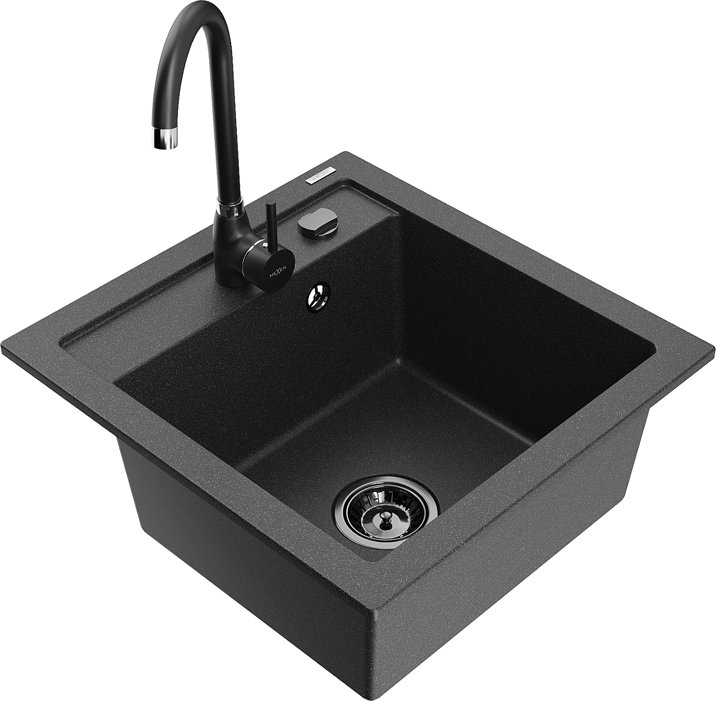 Mexen Vito 1-bowl granite kitchen sink with Telma kitchen tap, black speckled - 6503-76-670200-70-B