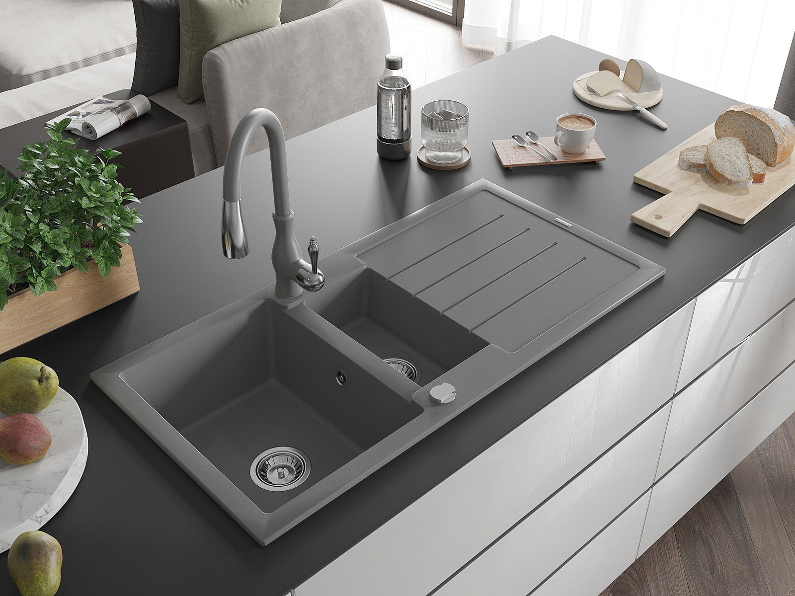 The sink is made of high quality granite. It is an elegant and, above all, practical complement to every kitchen, regardless of its style. High quality and granite durability ensure many years of use.
