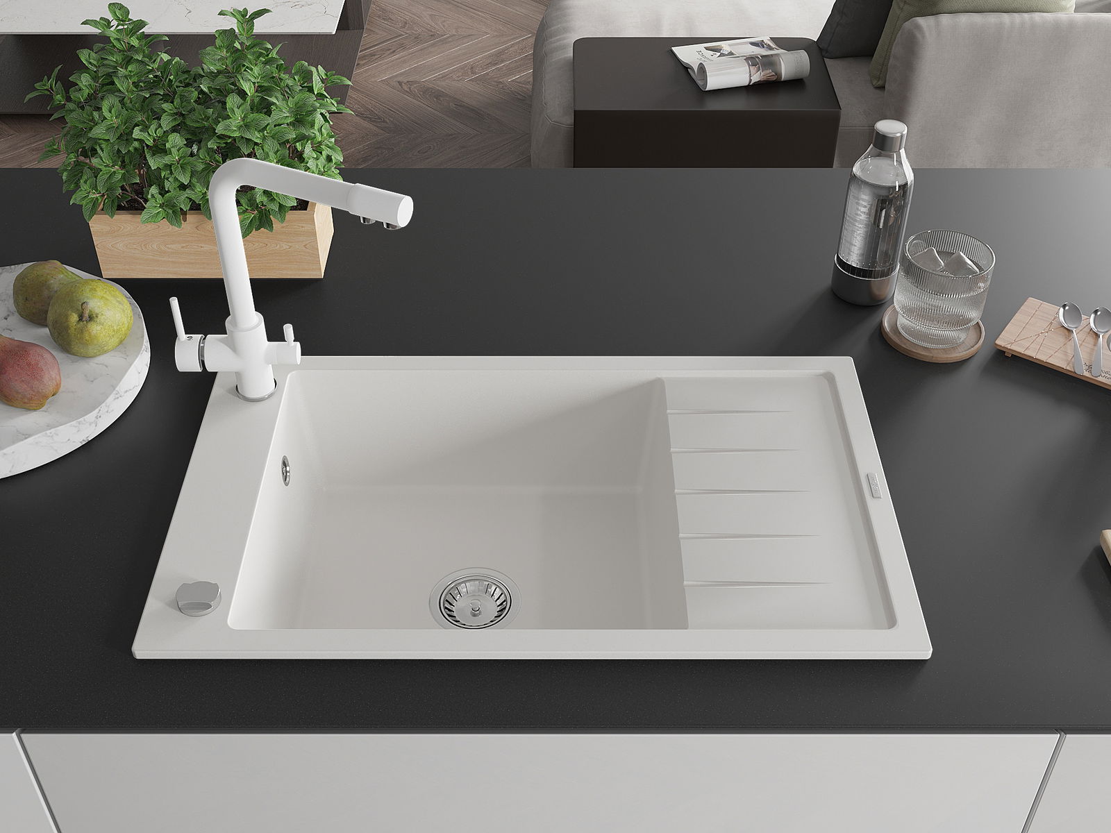 The surface of the sink is resistant to stains and discoloration, thanks to which it is easy to clean and retains its color for a long time. Aesthetic and practically complementing every kitchen.