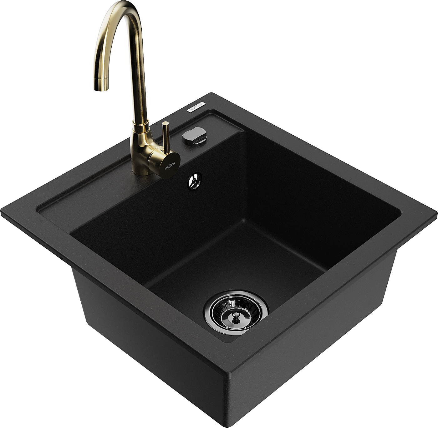 Mexen Vito 1-bowl granite sink with Telma kitchen tap, black - 6503-77-670200-50-B