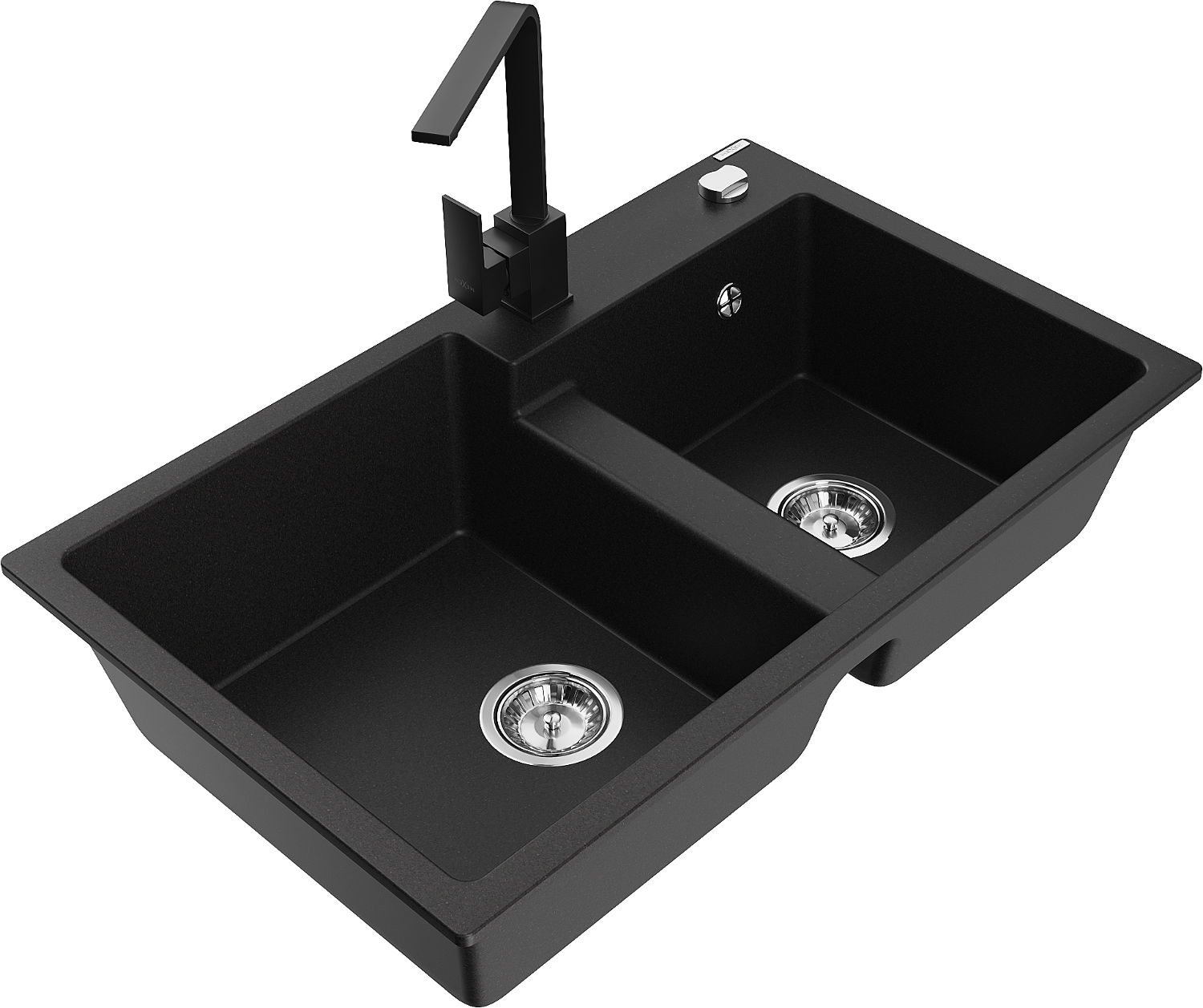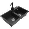 Mexen Tomas granite double-bowl sink with Rita kitchen tap, black - 6516-77-670300-70