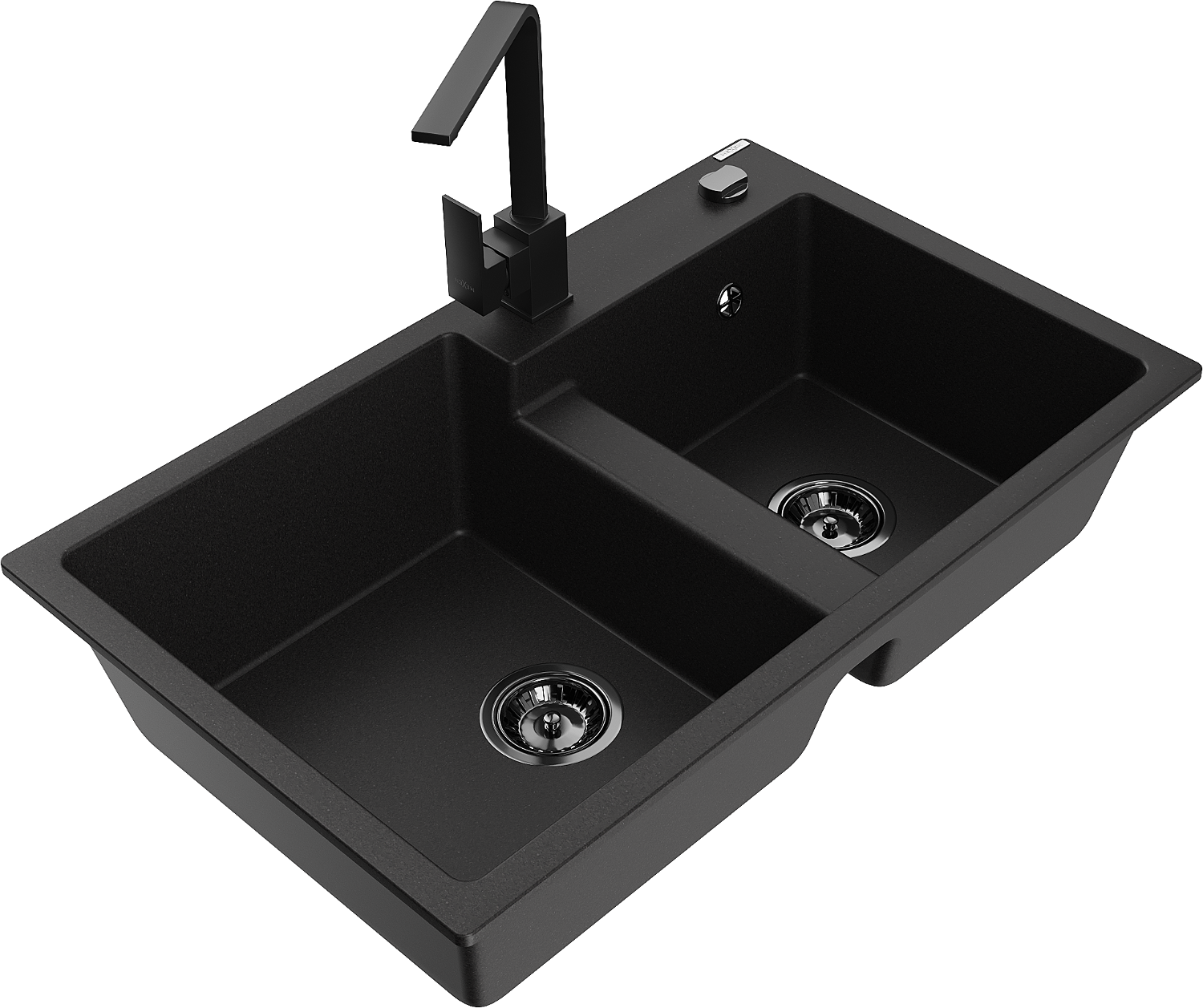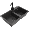 Mexen Tomas 2-bowl granite sink with Rita kitchen tap, black - 6516-77-670300-70-B