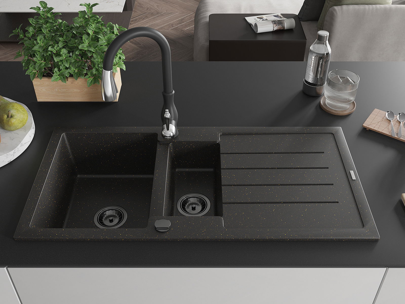 The sink is made of high quality granite. It is an elegant and, above all, practical complement to every kitchen, regardless of its style. High quality and granite durability ensure many years of use.