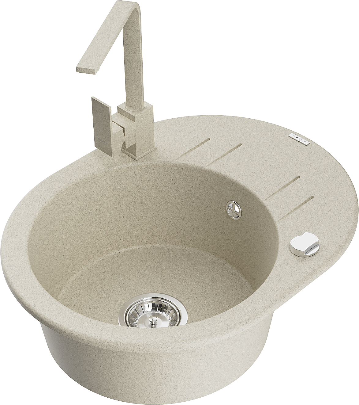 Mexen Kevin 1-bowl granite kitchen sink with drainer and Rita kitchen tap, beige - 6517-69-670300-69