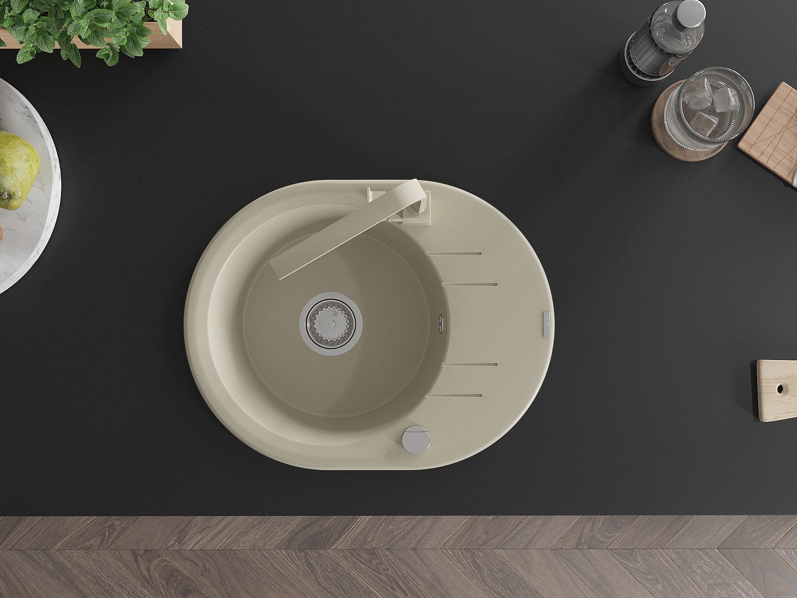 The sink is made of high quality granite. It is an elegant and, above all, practical complement to every kitchen, regardless of its style. High quality and granite durability ensure many years of use.