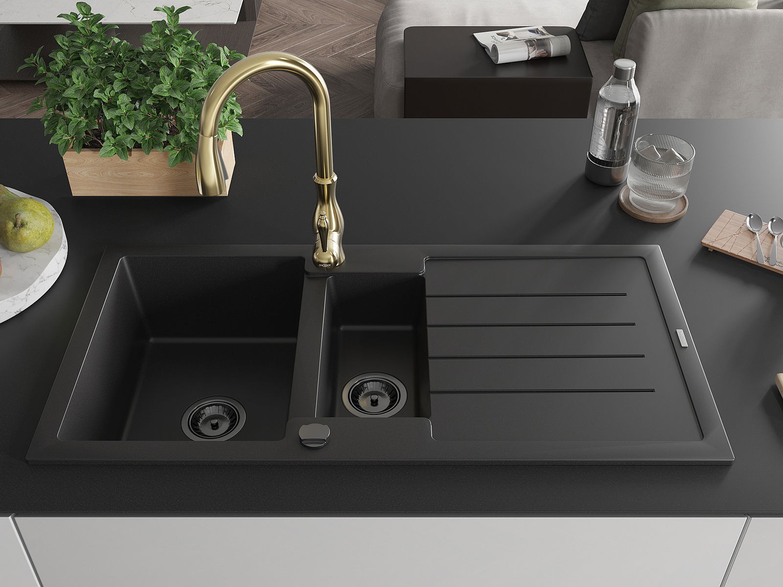 The sink is made of high quality granite. It is an elegant and, above all, practical complement to every kitchen, regardless of its style. High quality and granite durability ensure many years of use.