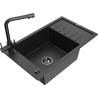 Mexen Elias granite sink 1-bowl with drainer and Duero kitchen tap, grey - 6511-71-671600-70-B