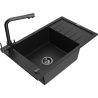 Mexen Elias single-bowl granite sink with drainer and Duero kitchen tap, black/silver metallic - 6511-73-671600-70-B