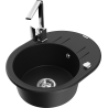 Mexen Kevin granite kitchen sink single-bowl with drainer and Rita kitchen tap, speckled black - 6517-76-670300-76