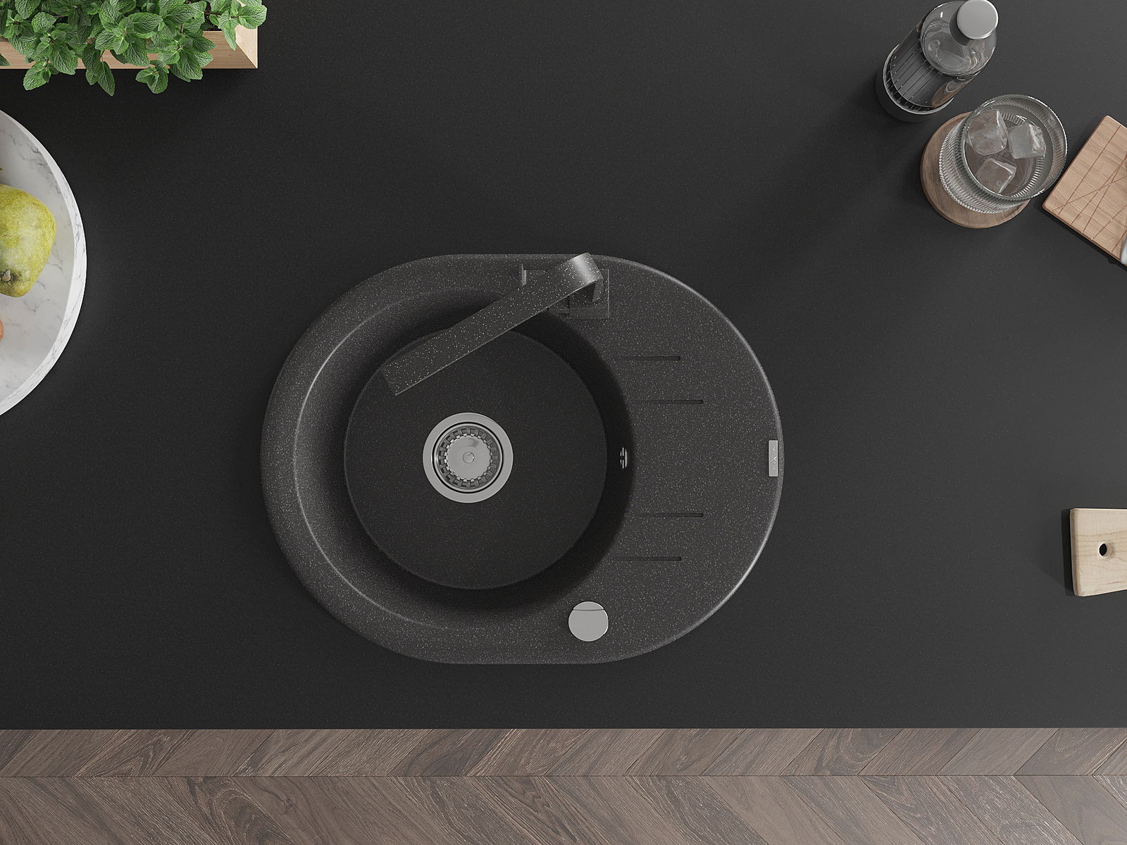 The sink is made of high quality granite. It is an elegant and, above all, practical complement to every kitchen, regardless of its style. High quality and granite durability ensure many years of use.