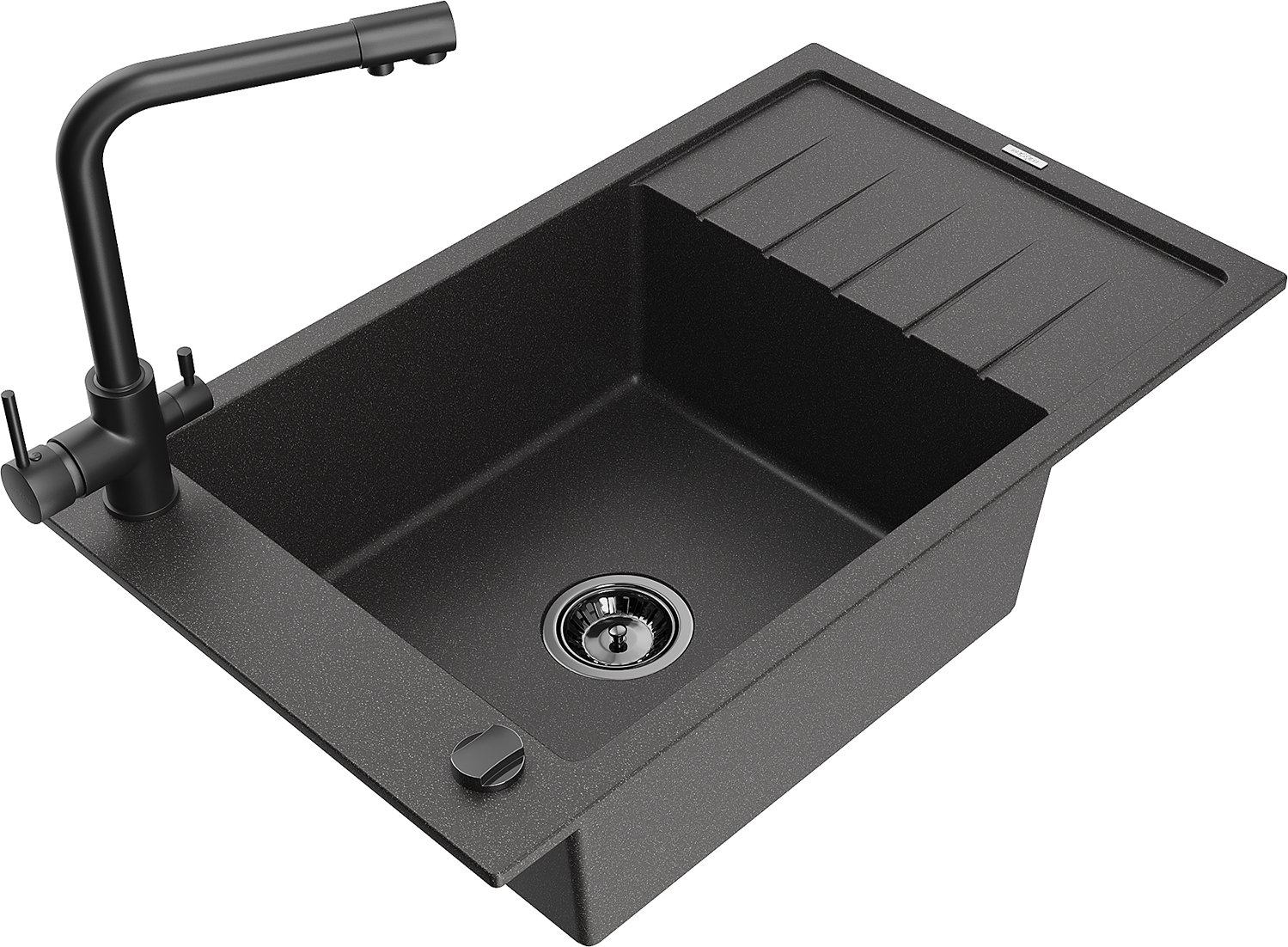 The sink is made of high quality granite. It is an elegant and, above all, practical complement to every kitchen, regardless of its style. High quality and granite durability ensure many years of use.