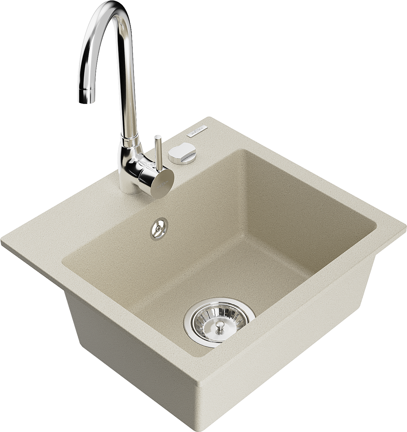 Mexen Milo Granite Sink 1-Bowl with Telma Kitchen Tap, Beige - 6505-69-670200-00