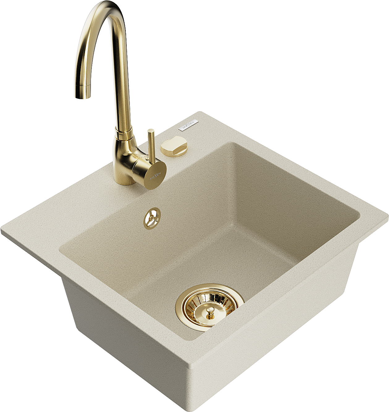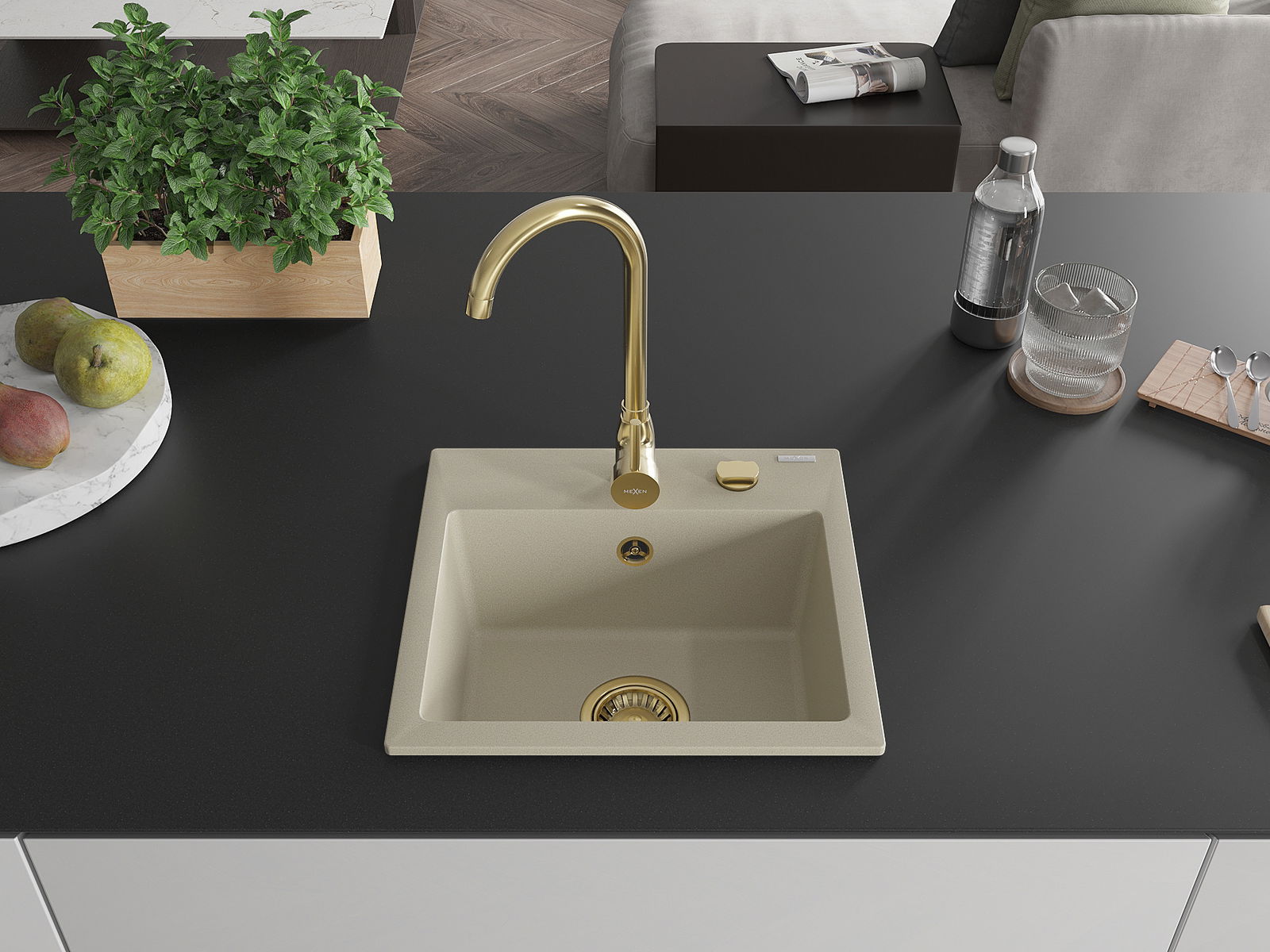 Mexen Milo granite kitchen sink single bowl with Telma kitchen tap, beige - 6505-69-670200-50