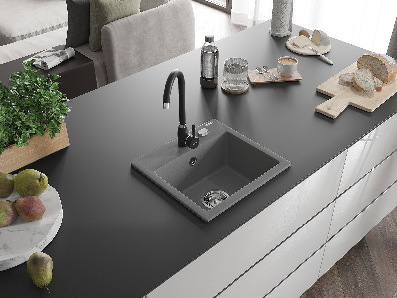 The surface of the sink is resistant to stains and discoloration, thanks to which it is easy to clean and retains its color for a long time. Aesthetic and practically complementing every kitchen.
