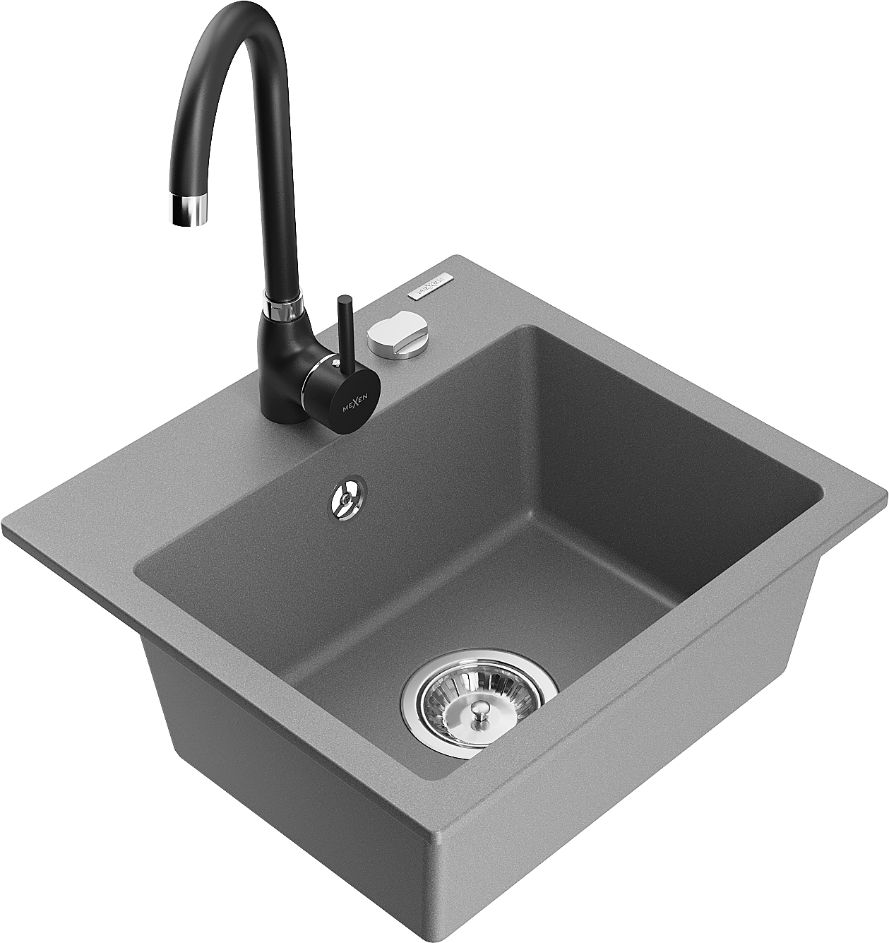 Mexen Milo 1-bowl granite sink with Telma kitchen tap, grey - 6505-71-670200-70