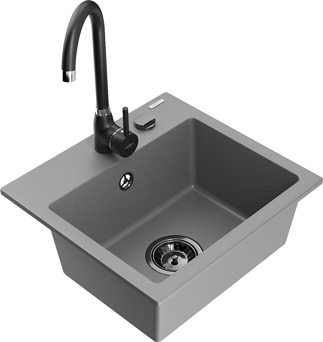 Mexen Milo 1-bowl granite sink with Telma kitchen tap, grey - 6505-71-670200-70-B