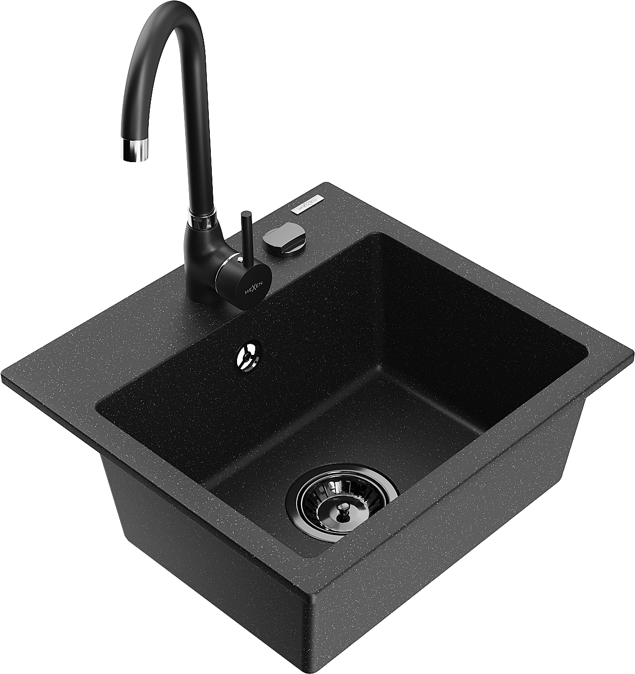 Mexen Milo 1-bowl granite sink with Telma kitchen tap, black/silver - 6505-73-670200-70-B