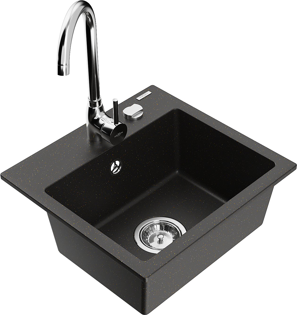 Mexen Milo granite kitchen sink 1-bowl with Telma kitchen mixer tap, black/gold - 6505-75-670200-00