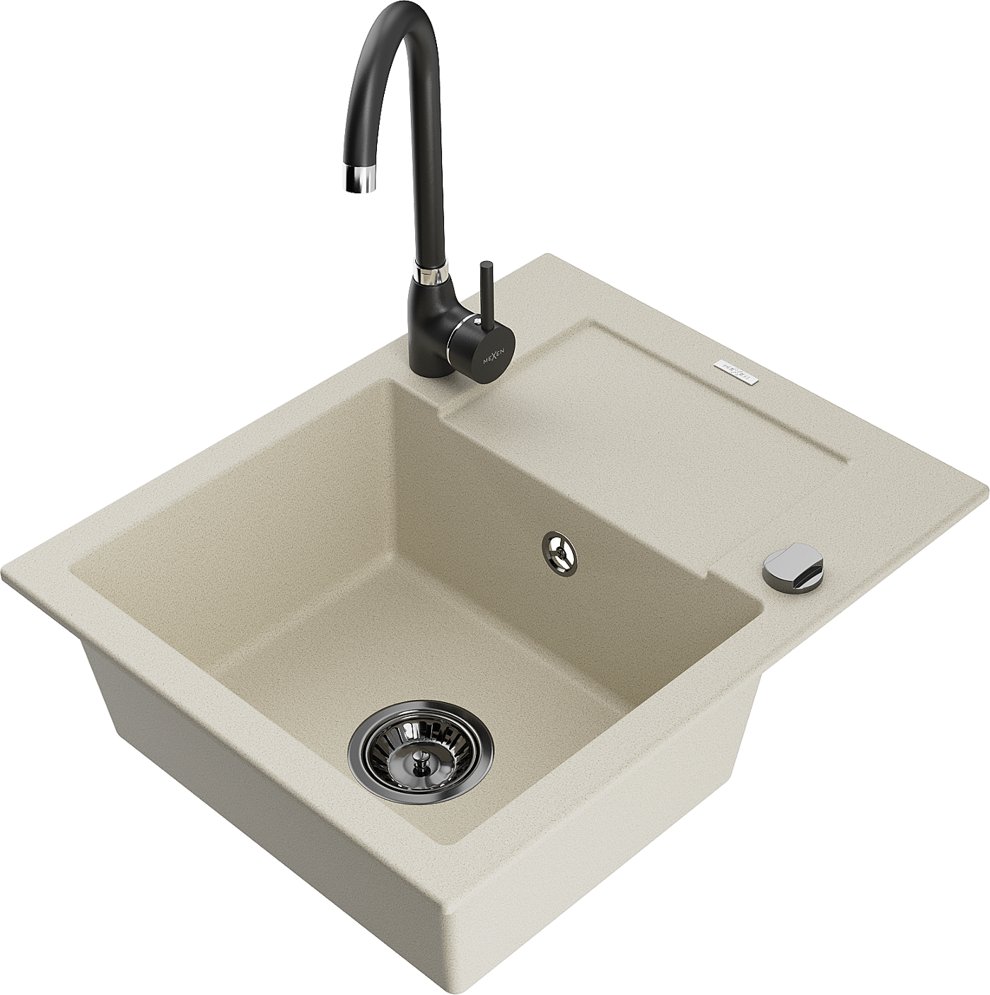 Mexen Enzo granite sink 1-bowl with drainer and Telma kitchen tap, beige - 6506-69-670200-70