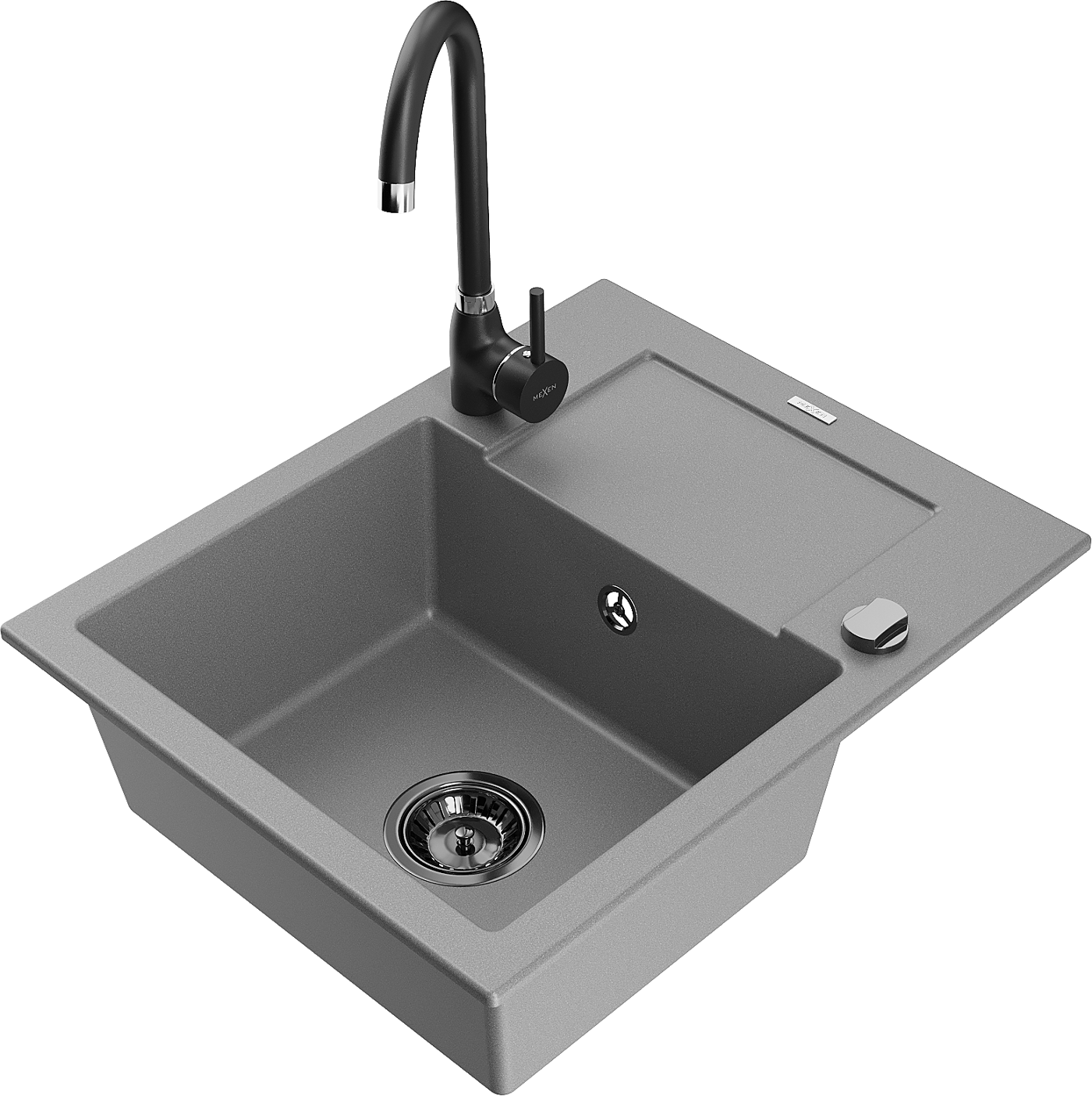 Mexen Enzo 1-bowl granite sink with drainer and Telma kitchen tap, grey - 6506-71-670200-70-B