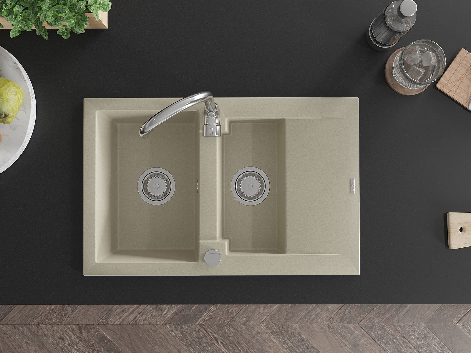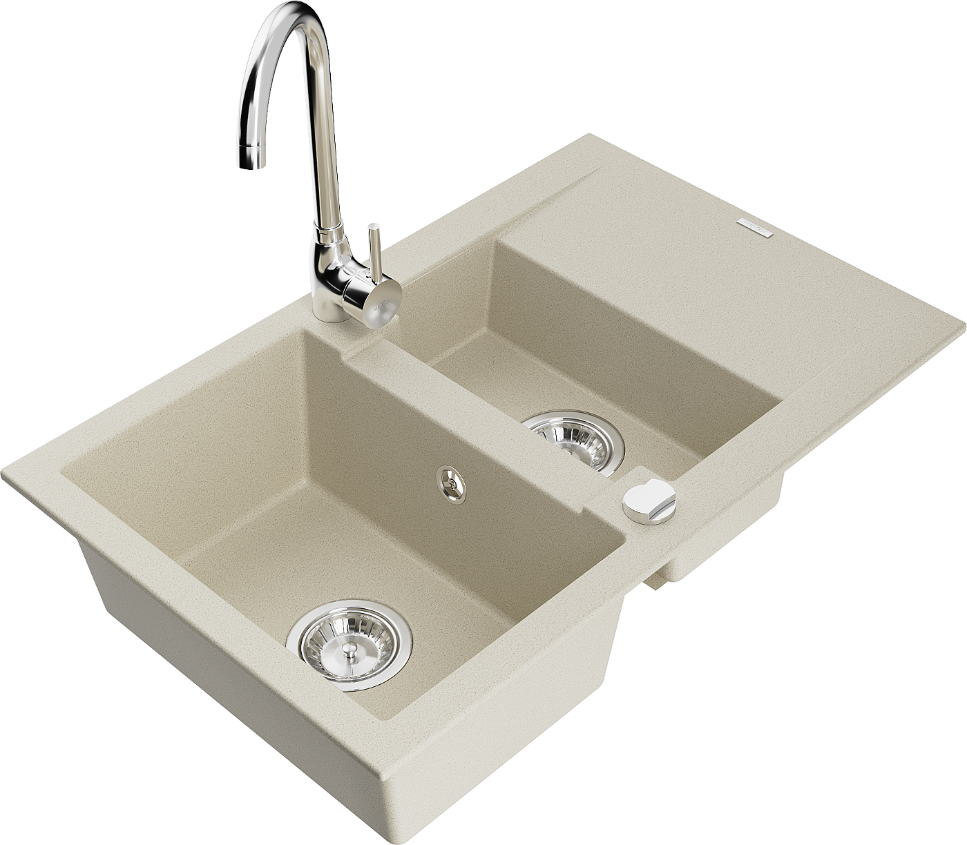 Mexen Gaspar granite sink 1.5-bowl with drainer and Telma kitchen tap, beige - 6507-69-670200-00