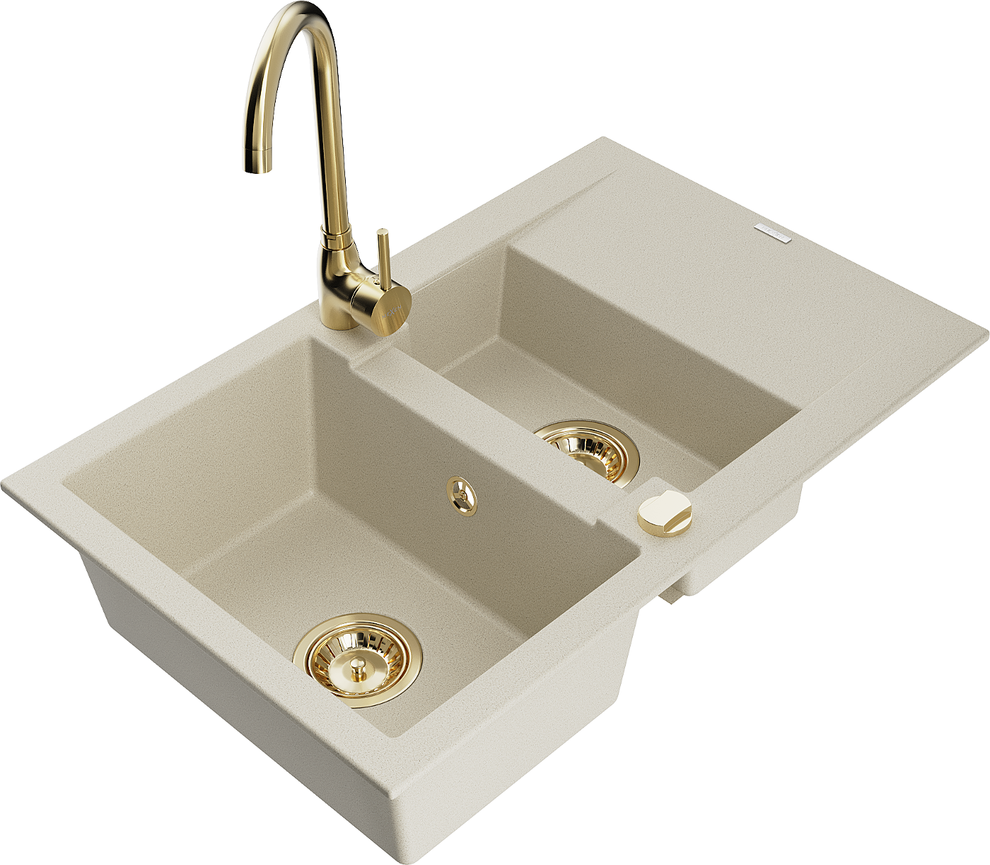 Mexen Gaspar 1.5-bowl granite sink with drainer and Telma kitchen tap, beige - 6507-69-670200-50