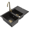 Mexen Gaspar 1.5-bowl granite sink with drainer and Telma kitchen tap, black/silver - 6507-73-670200-50