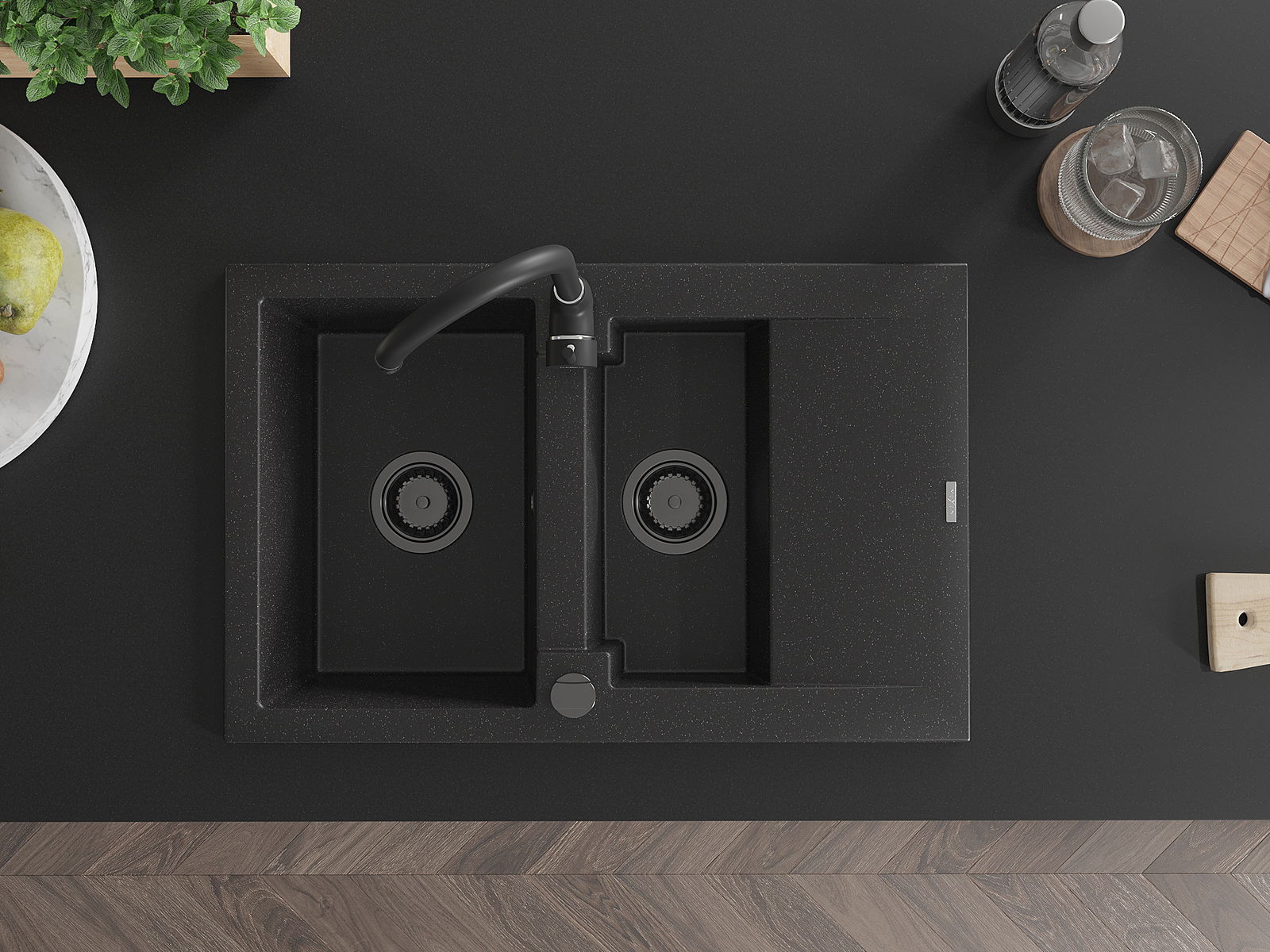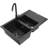 Mexen Gaspar granite sink 1.5-bowl with drainer and Telma kitchen tap, black/silver - 6507-73-670200-70-B