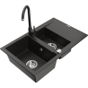 Mexen Gaspar granite sink 1.5-bowl with drainer and Telma kitchen tap, black speckled - 6507-76-670200-70