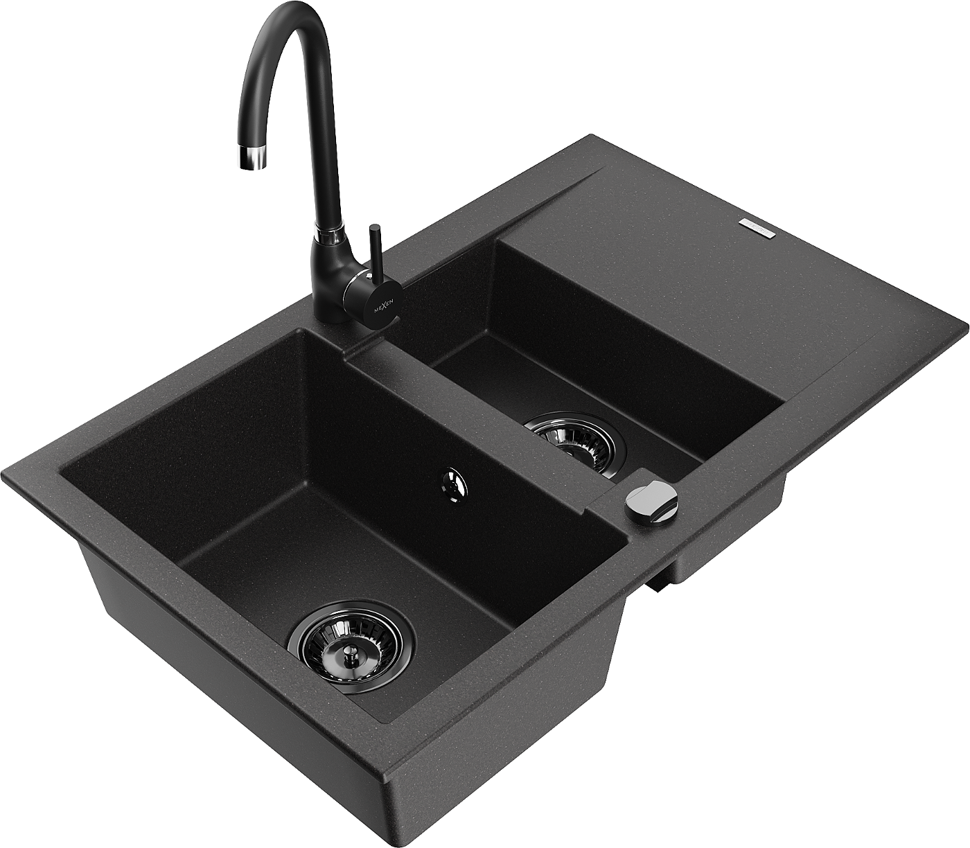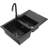 Mexen Gaspar granite sink 1.5-bowl with drainer and Telma kitchen tap, black - 6507-77-670200-70-B