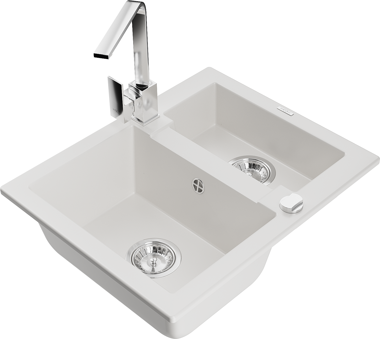 Mexen Carlos 1.5-bowl granite kitchen sink with Rita tap, white - 6518-20-670300-00