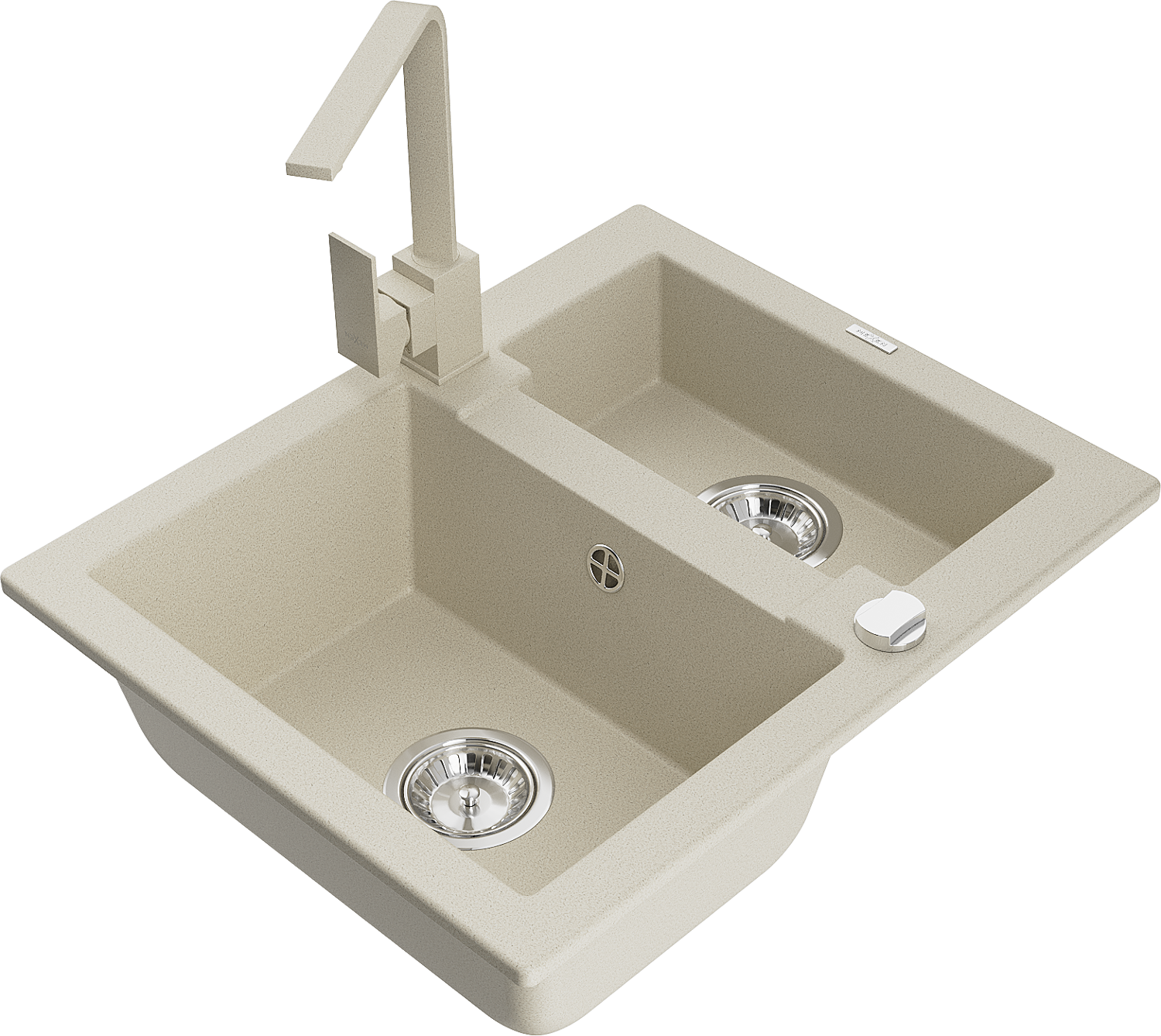 Mexen Carlos granite sink 1.5-bowl with Rita kitchen tap, beige - 6518-69-670300-69