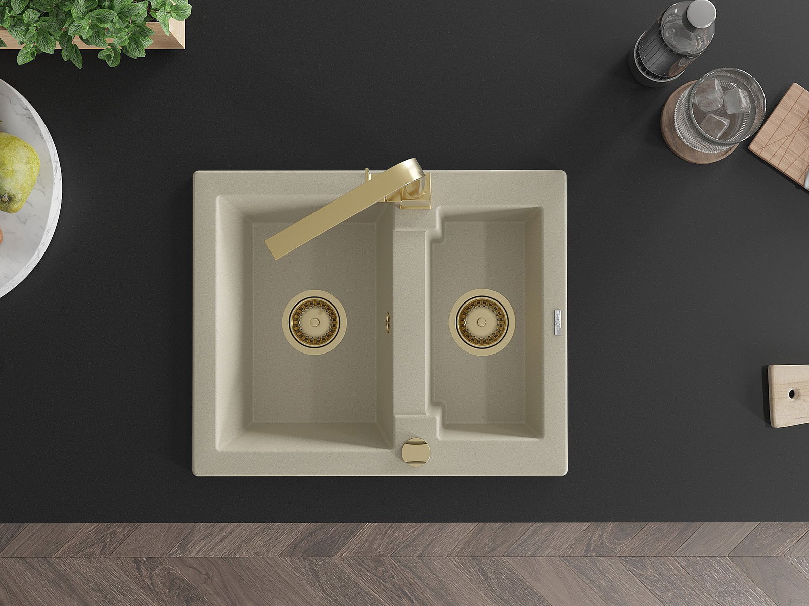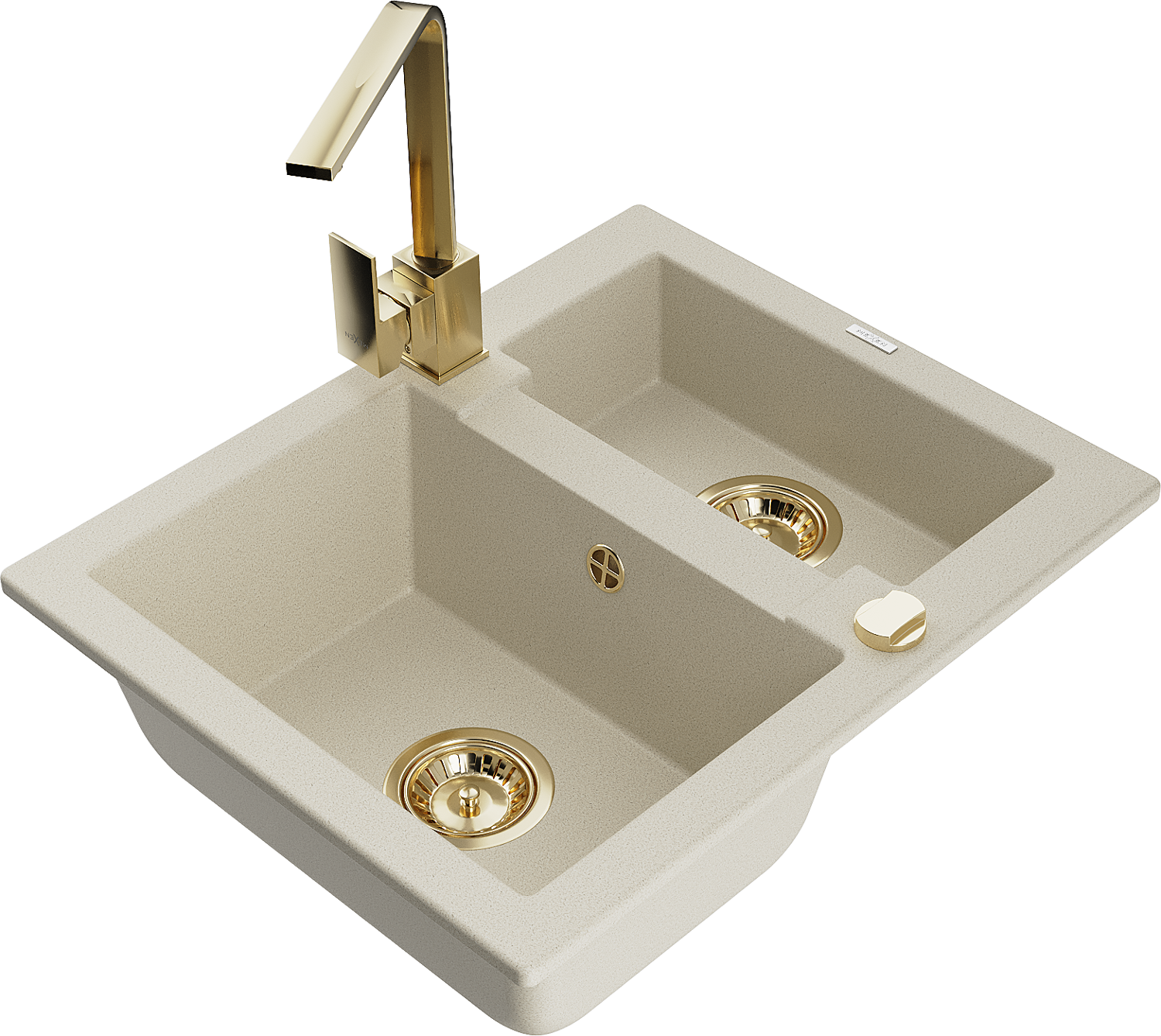 Mexen Carlos granite sink 1.5-bowl with Rita kitchen tap, beige - 6518-69-670300-50