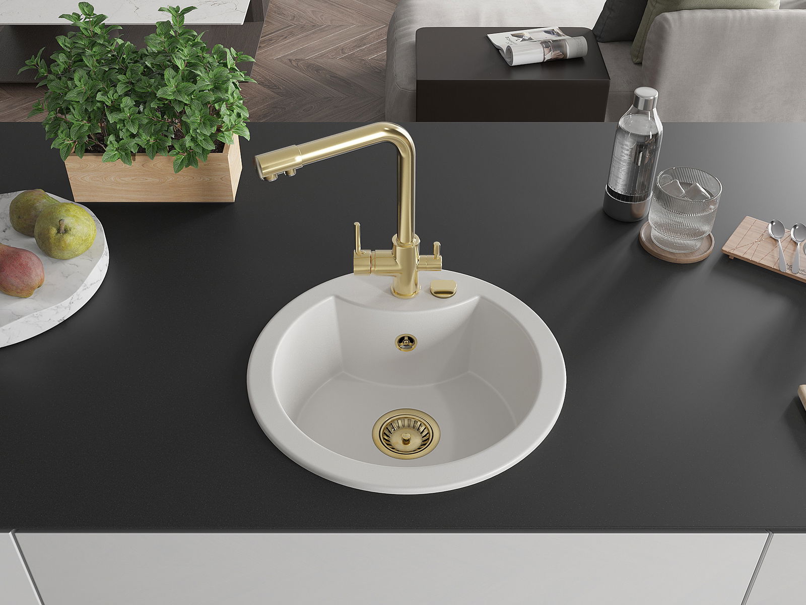 The sink is made of high quality granite. It is an elegant and, above all, practical complement to every kitchen, regardless of its style. High quality and granite durability ensure many years of use.