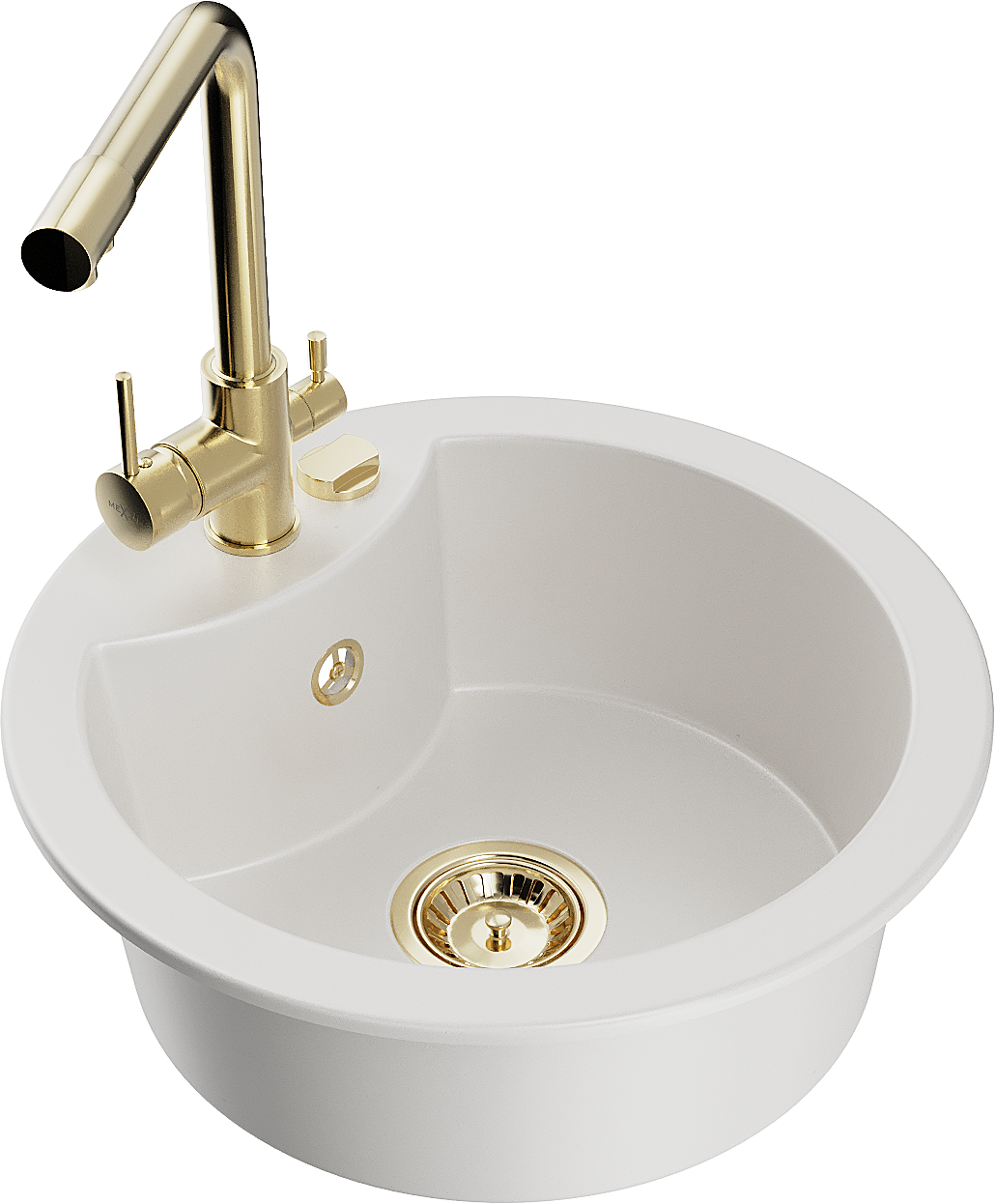 Mexen Diego 1-Bowl Granite Sink with Duero Kitchen Tap, White - 6512-20-671600-50