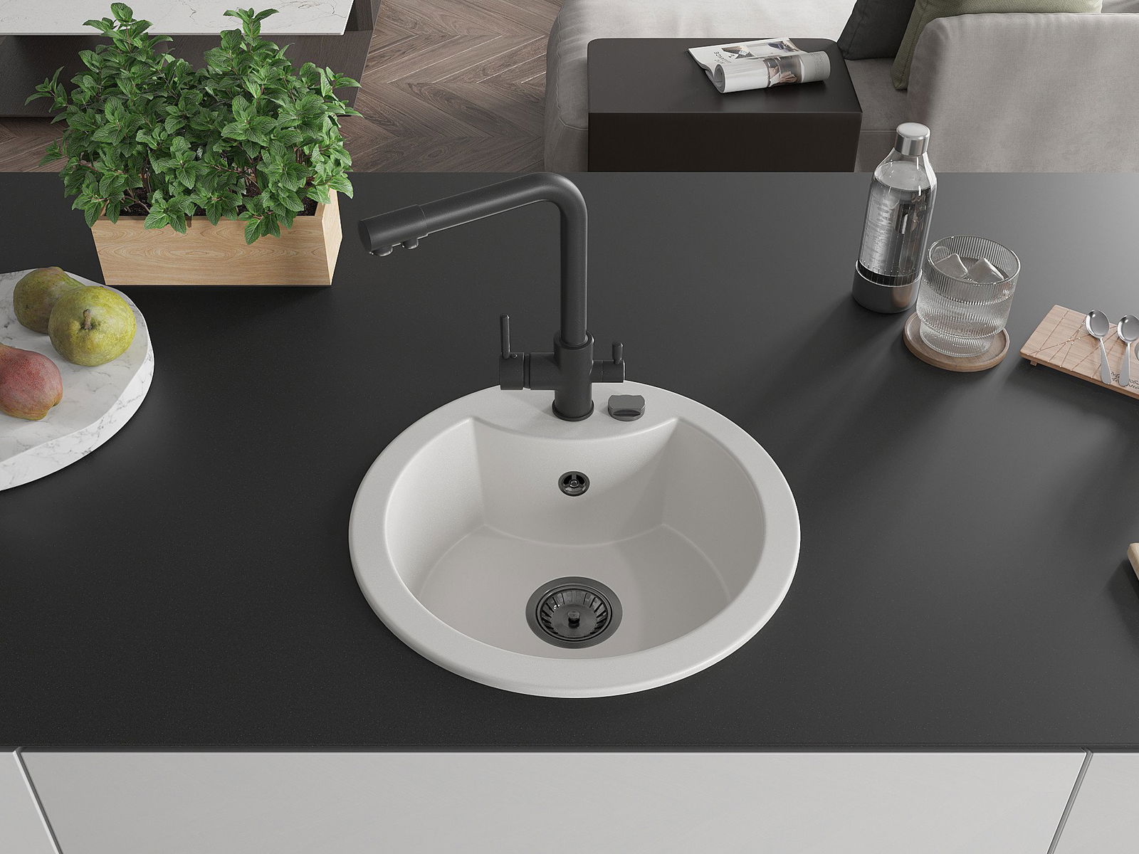 The surface of the sink is resistant to stains and discoloration, thanks to which it is easy to clean and retains its color for a long time. Aesthetic and practically complementing every kitchen.