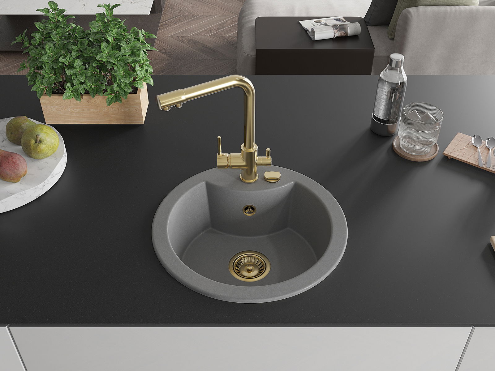 The sink is made of high quality granite. It is an elegant and, above all, practical complement to every kitchen, regardless of its style. High quality and granite durability ensure many years of use.