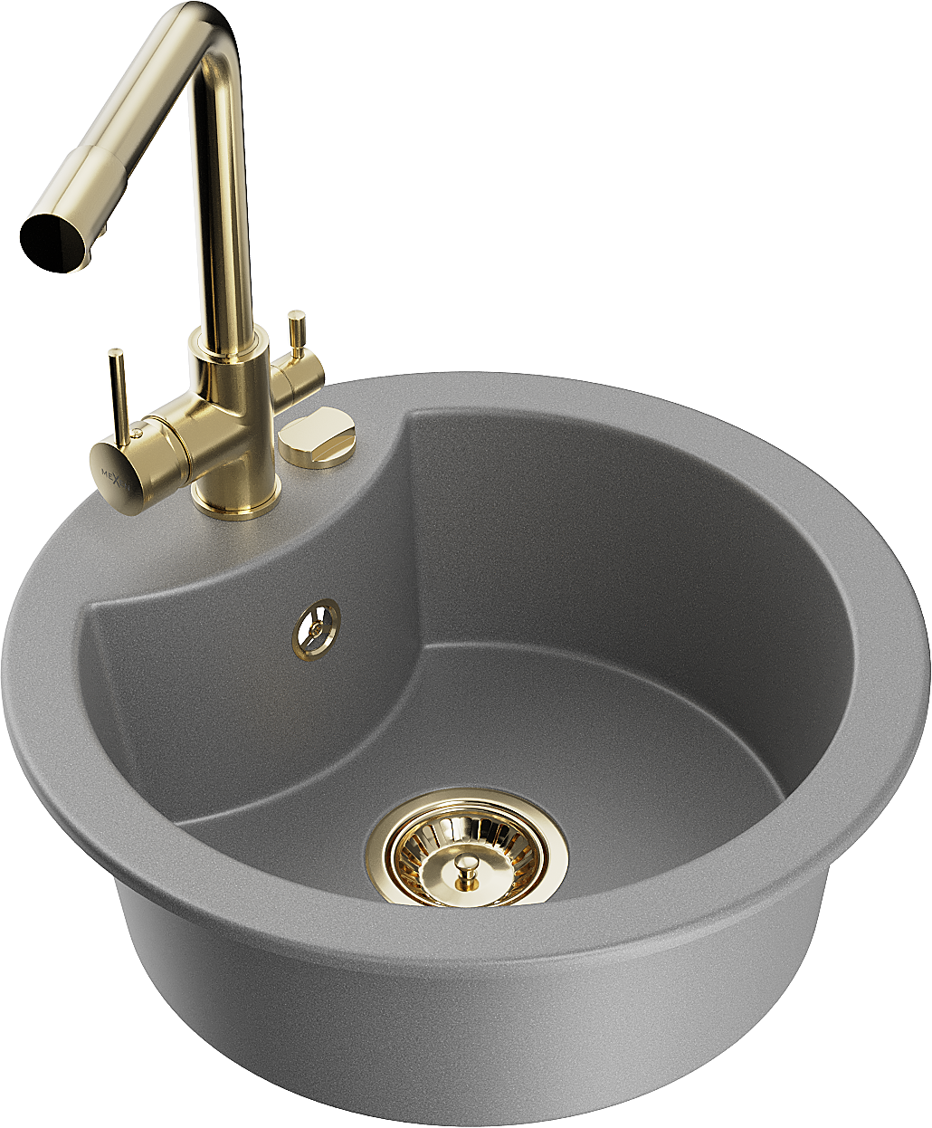 Mexen Diego granite sink 1-bowl with Duero kitchen tap, grey - 6512-71-671600-50
