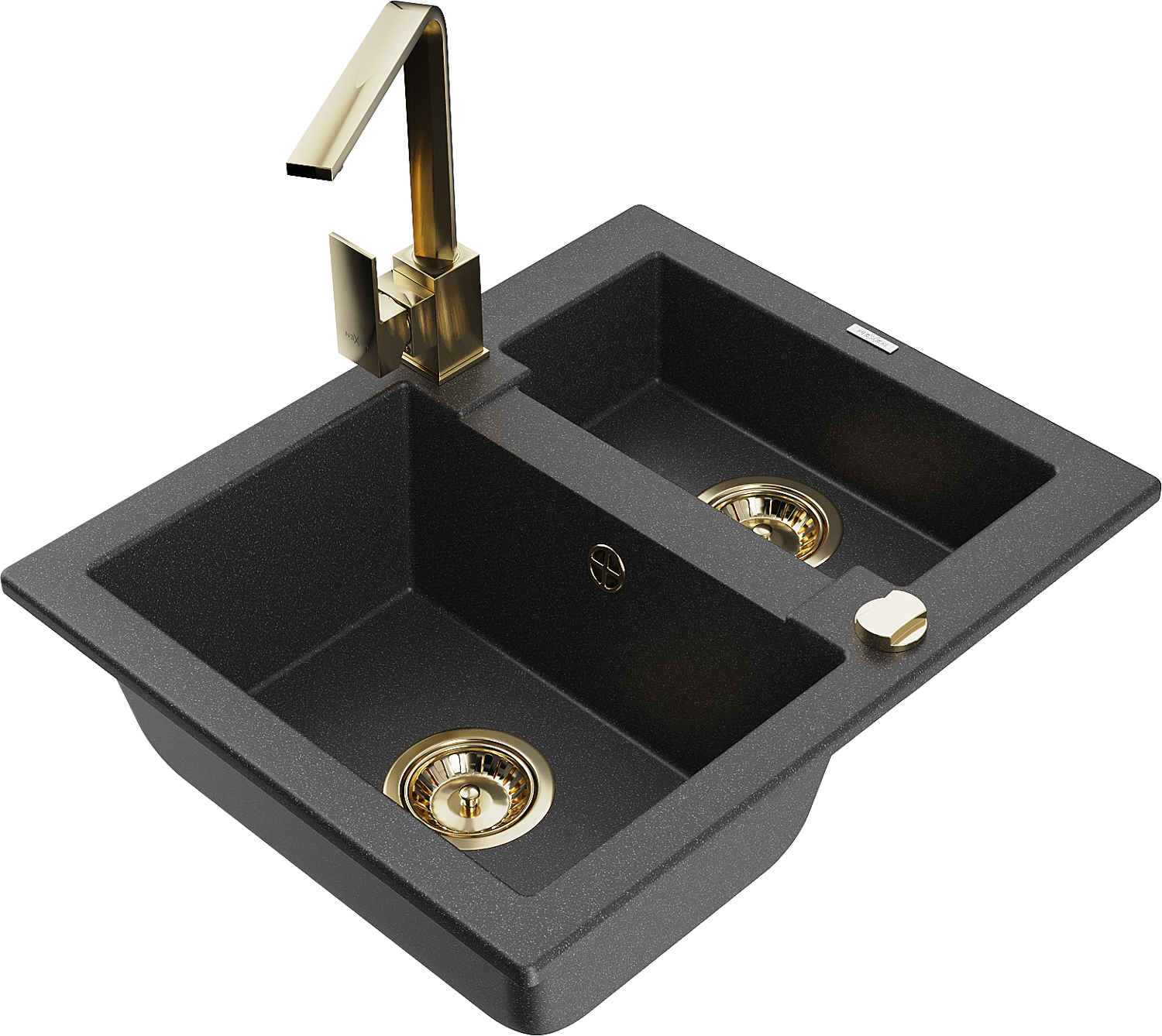Mexen Carlos granite sink 1.5-bowl with Rita kitchen tap, black speckled - 6518-76-670300-50