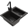 Mexen Carlos granite kitchen sink 1.5-bowl with Rita kitchen tap, speckled black - 6518-76-670300-70-B