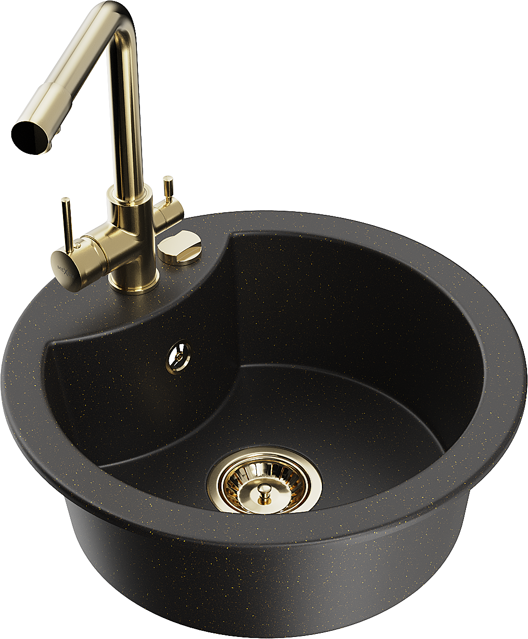 Mexen Diego 1-bowl granite sink with Duero kitchen mixer tap, black/gold metallic - 6512-75-671600-50