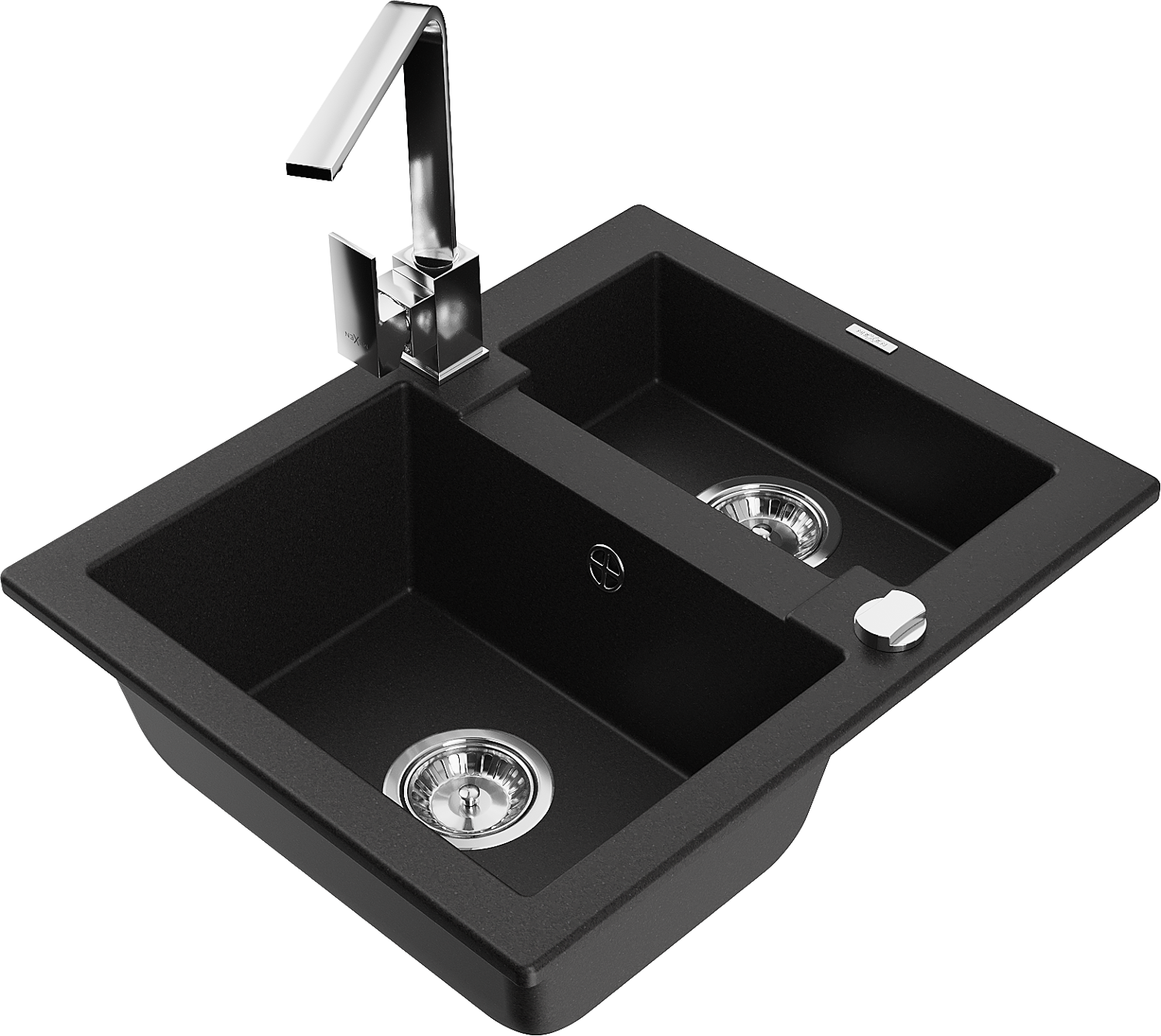 Mexen Carlos granite sink 1.5-bowl with Rita kitchen tap, black - 6518-77-670300-00
