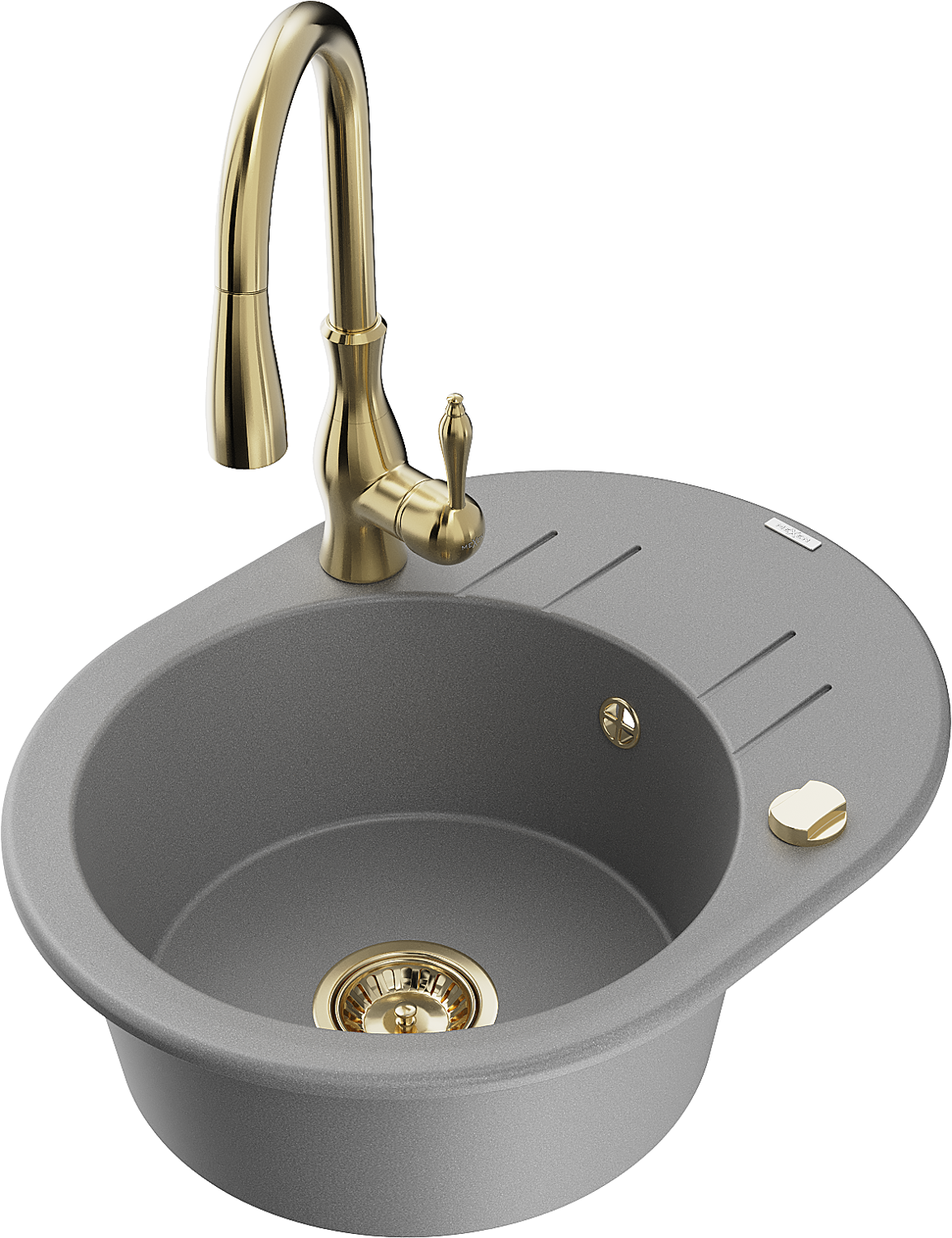 Mexen Kevin 1-bowl granite sink with drainer and Savita kitchen tap, grey - 6517-71-672601-50
