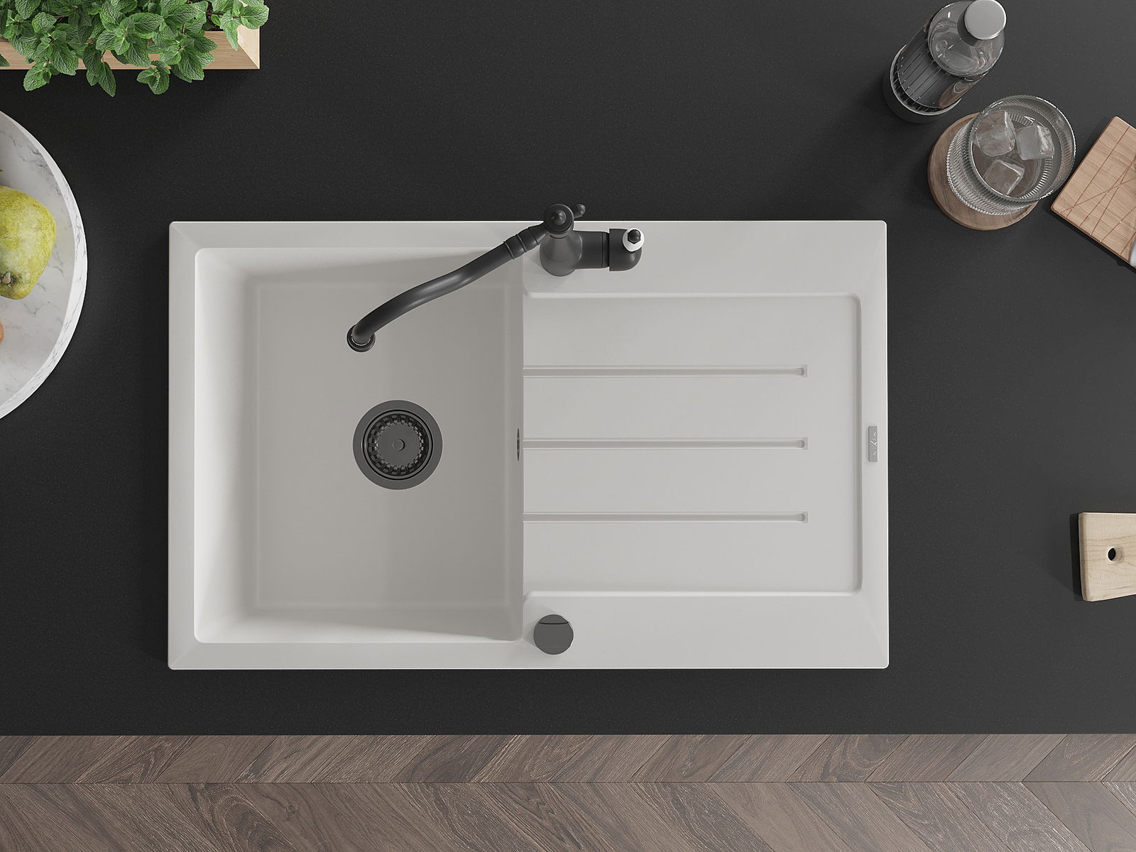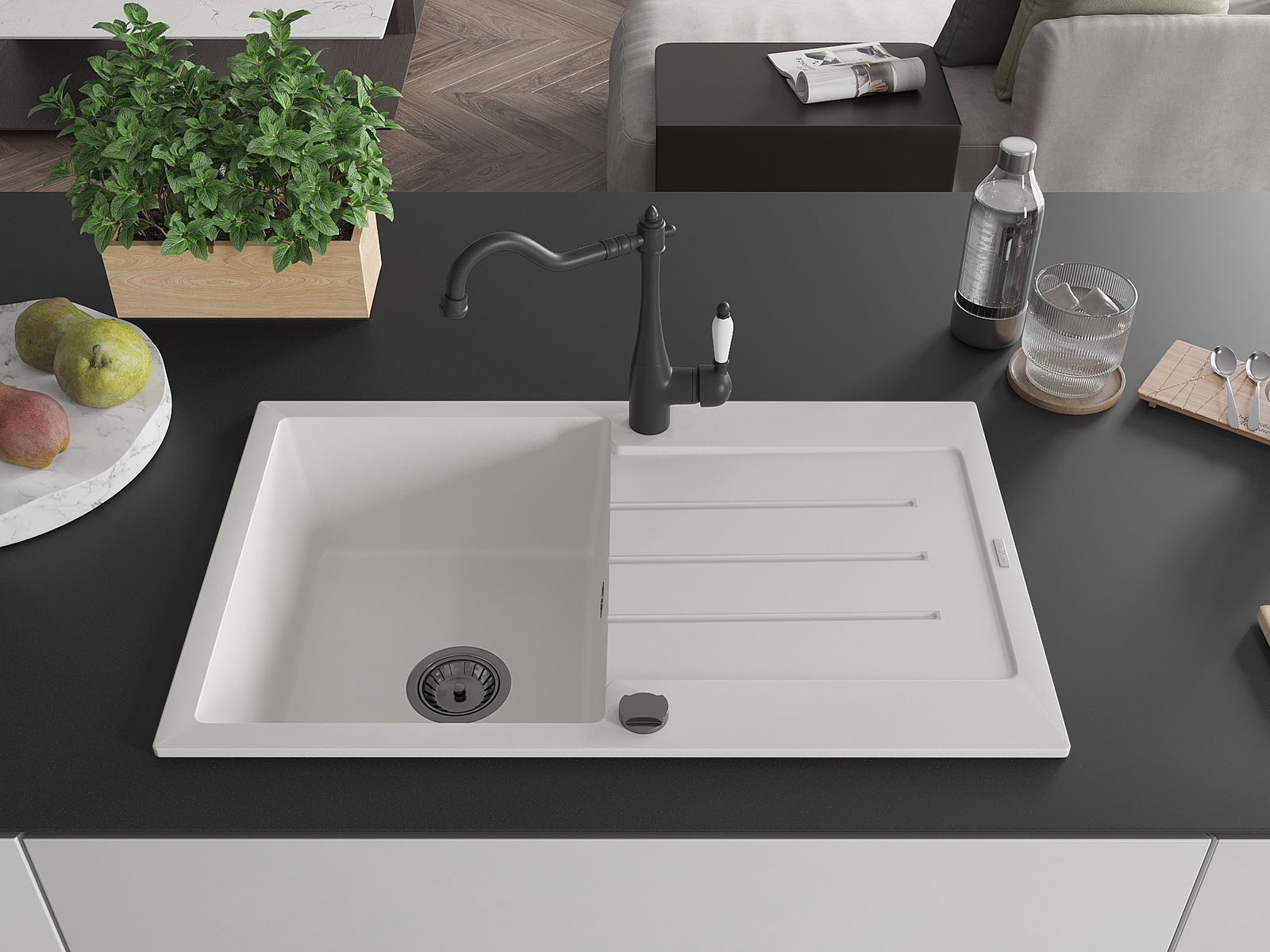 The surface of the sink is resistant to stains and discoloration, thanks to which it is easy to clean and retains its color for a long time. Aesthetic and practically complementing every kitchen.