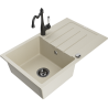 Mexen Bruno 1-bowl granite sink with drainer and Carla kitchen tap, white - 6513-20-670700-70