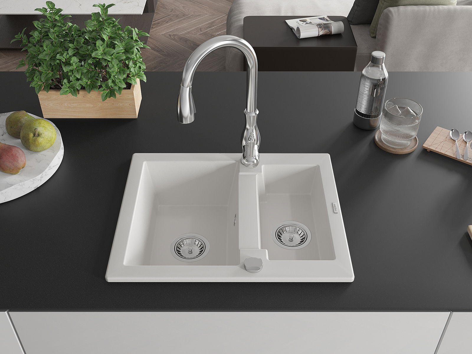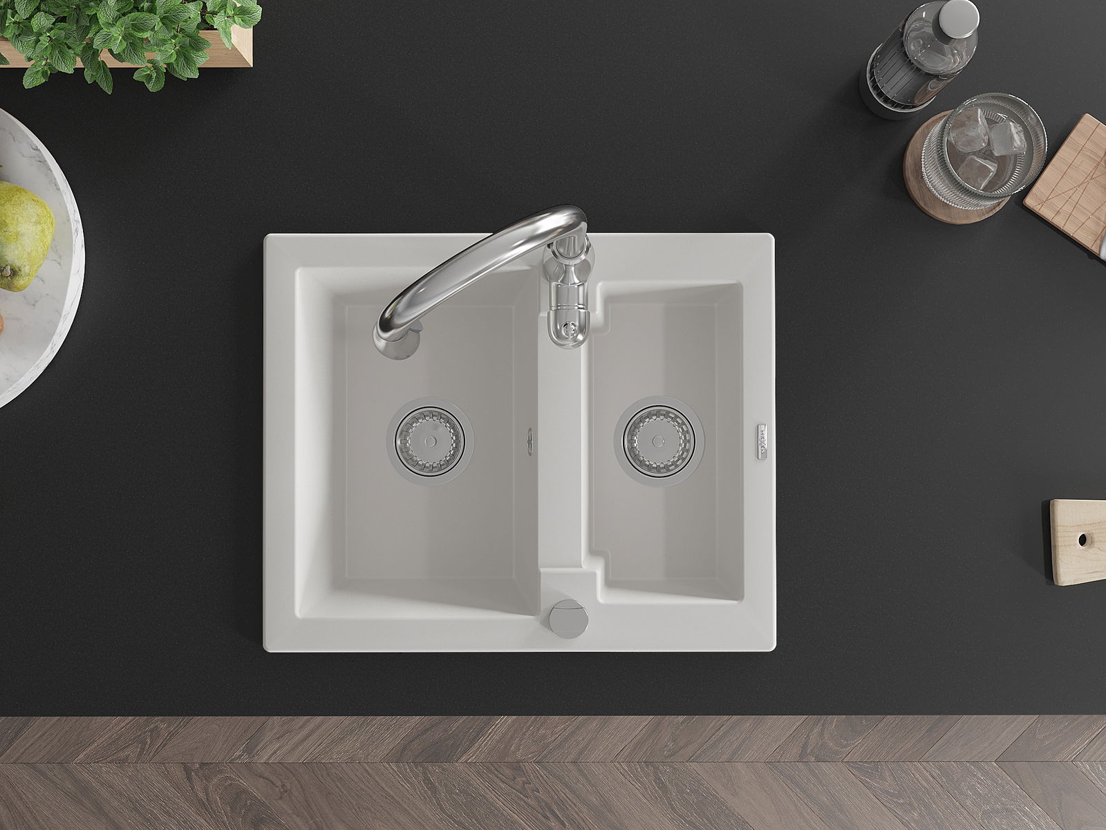 The surface of the sink is resistant to stains and discolouration, making it easy to maintain cleanliness and retain its colour for a long time of use. An aesthetic and practical addition to any kitchen.